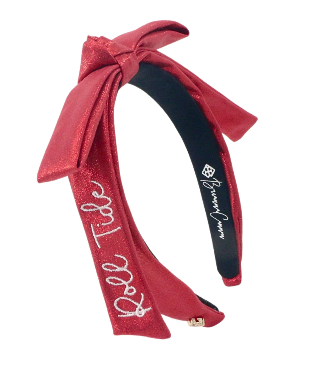 - Crimson Thin University of Alabama Ribbon Bow Headband with White Embroidered ROLL TIDE