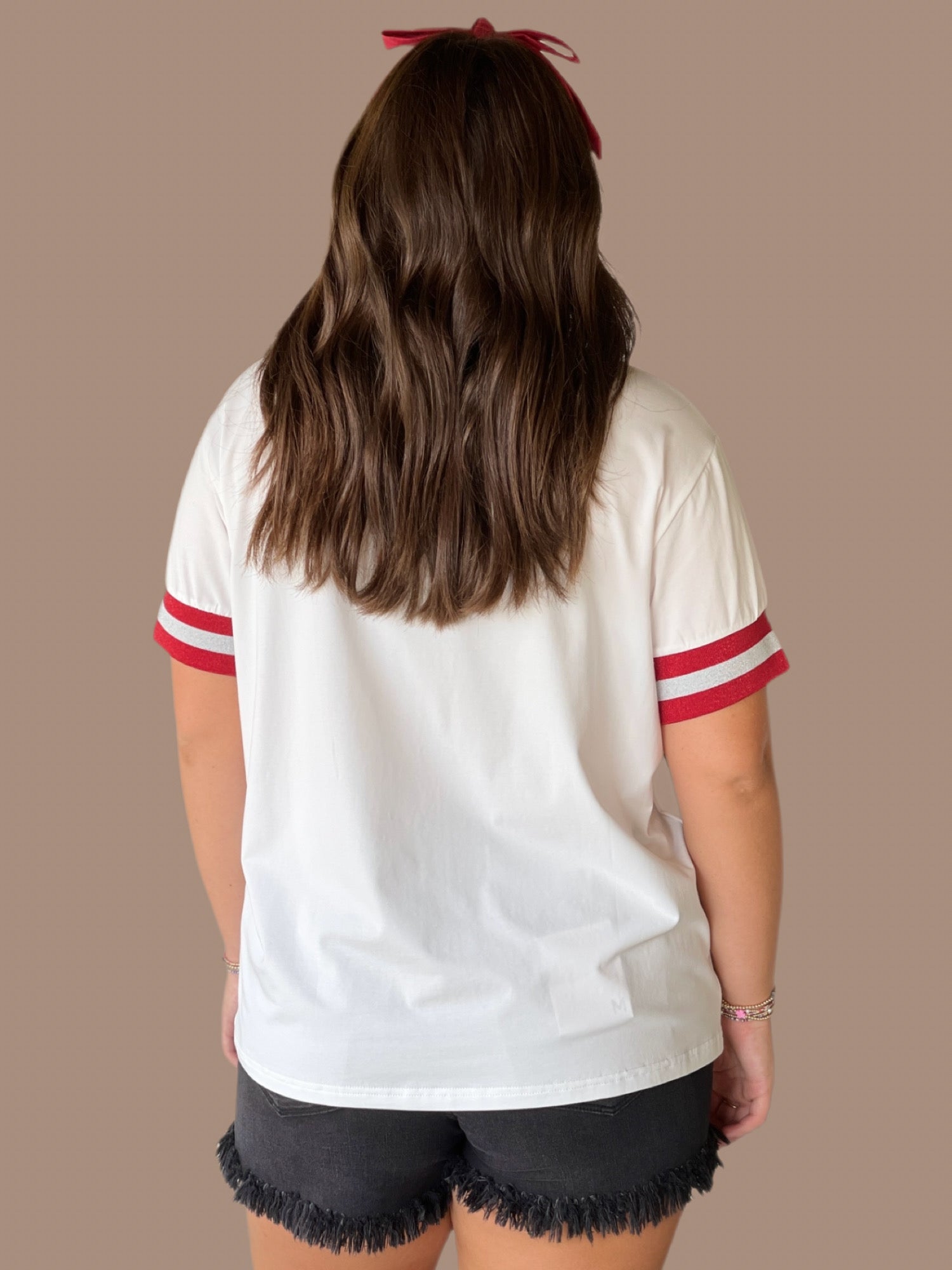 - Features Sparkly university logo on chest with beautiful embroidered and appliqué details with stripe trim on sleeves in team colors