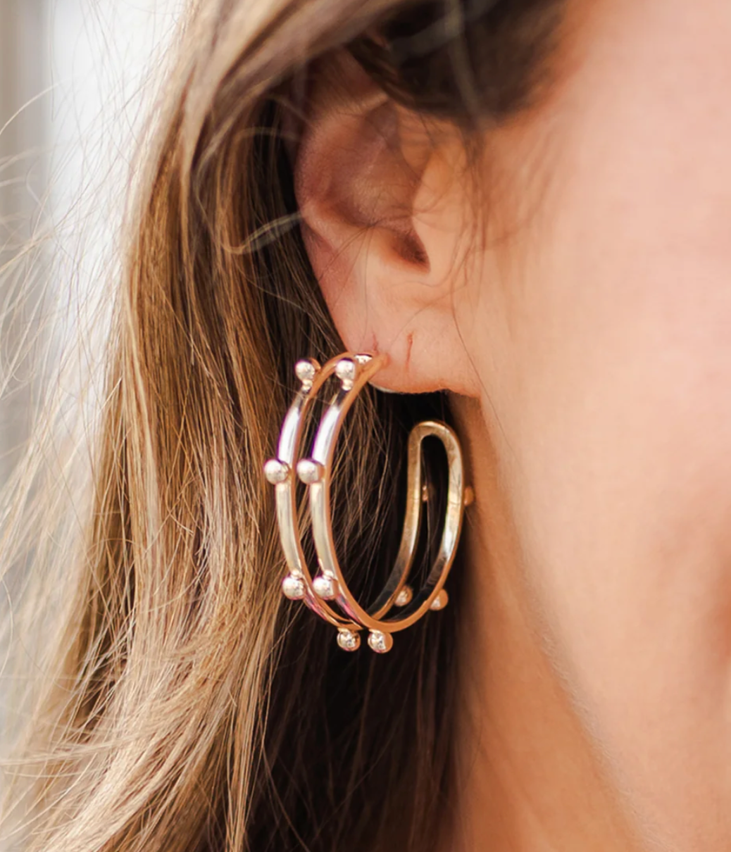 Introducing our Anya Earrings, a sophisticated accessory that effortlessly blends elegance with modern charm. These refined hoops feature delicate gold ball accents that add a touch of texture and shine to their classic design. These earrings are lightweight and comfortable, making them perfect for everyday wear or special occasions.