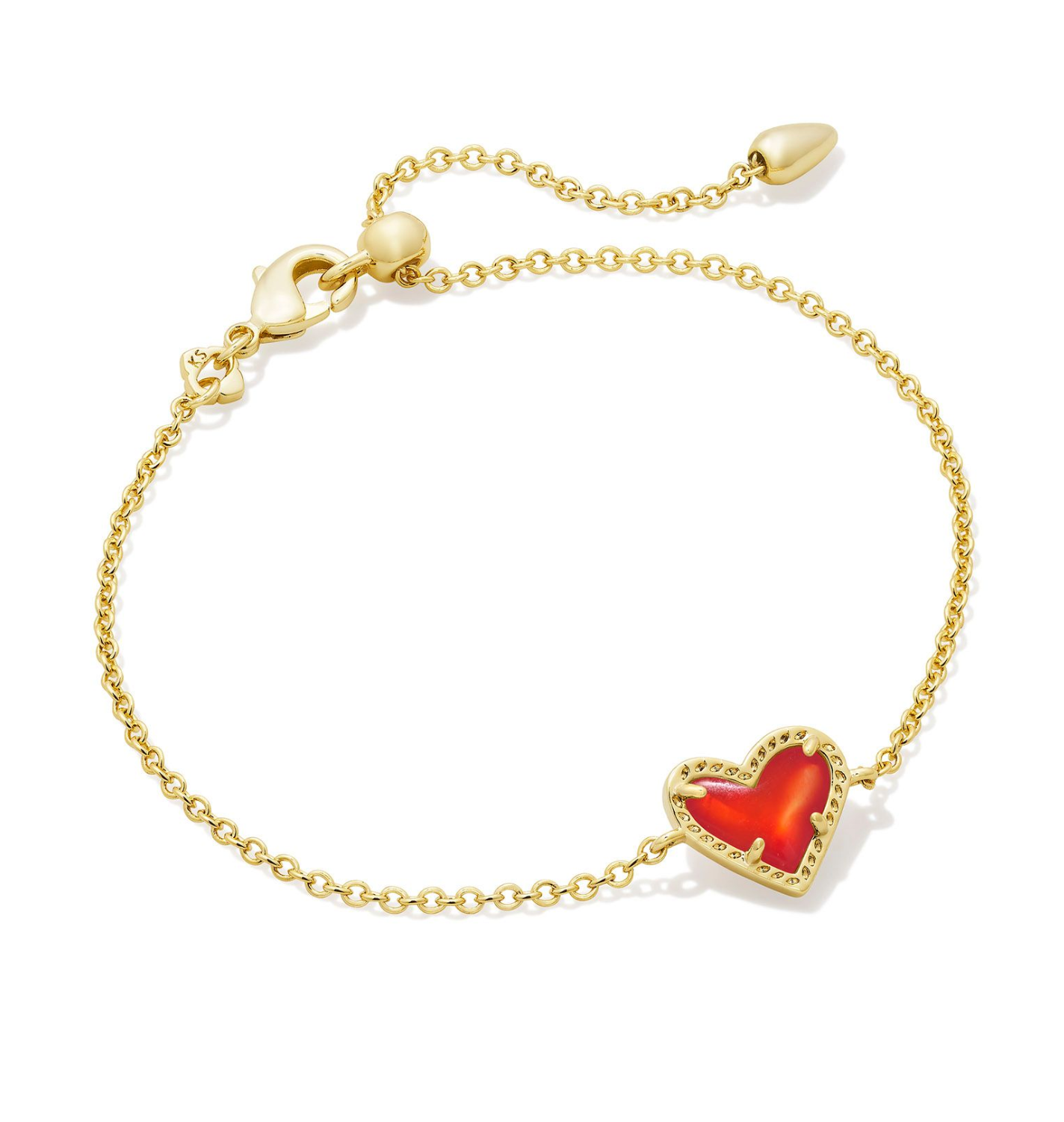 Wear your heart on your wrist with the Ari Heart Gold Delicate Chain Bracelet inRed Illusion. This asymmetrical design shines solo, but functions just as well as part of your everyday stack.
