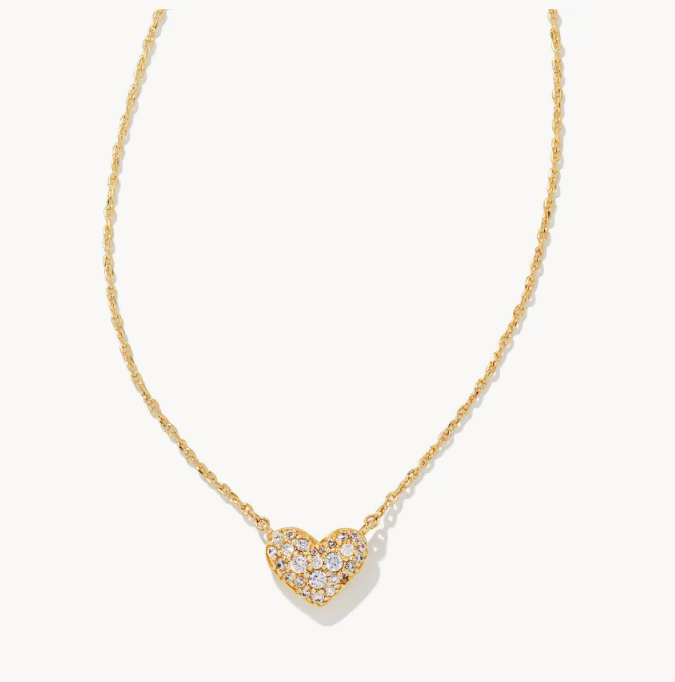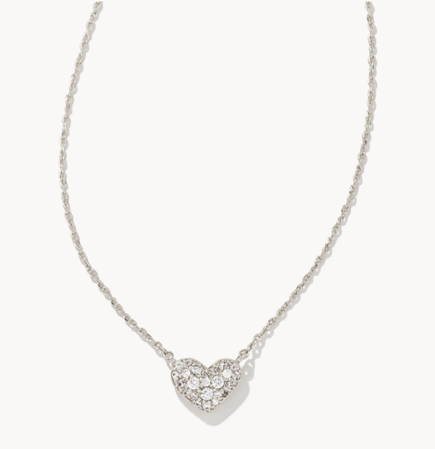 Wear your heart out with the Ari Pavé Crystal Heart Necklace in White Crystal. From the delicate metal chain to the dainty heart adorned with stunning pavé crystals, this timeless classic is the perfect piece for you and for them.