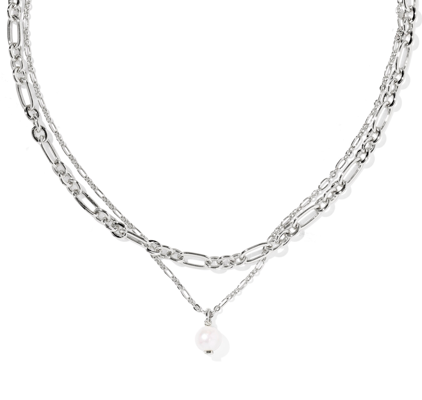 The layered look is easy to achieve with the Ashton Silver Multi Strand Necklace. Two figaro chains and a freshwater cultured pearl combine to create a beautiful necklace with an adjustable length, perfect to wear on its own or with your other favorite pieces.