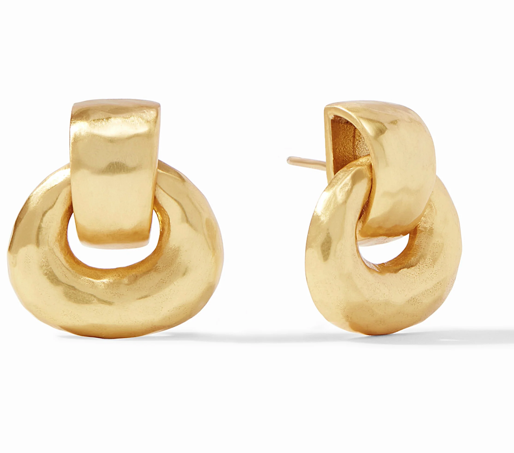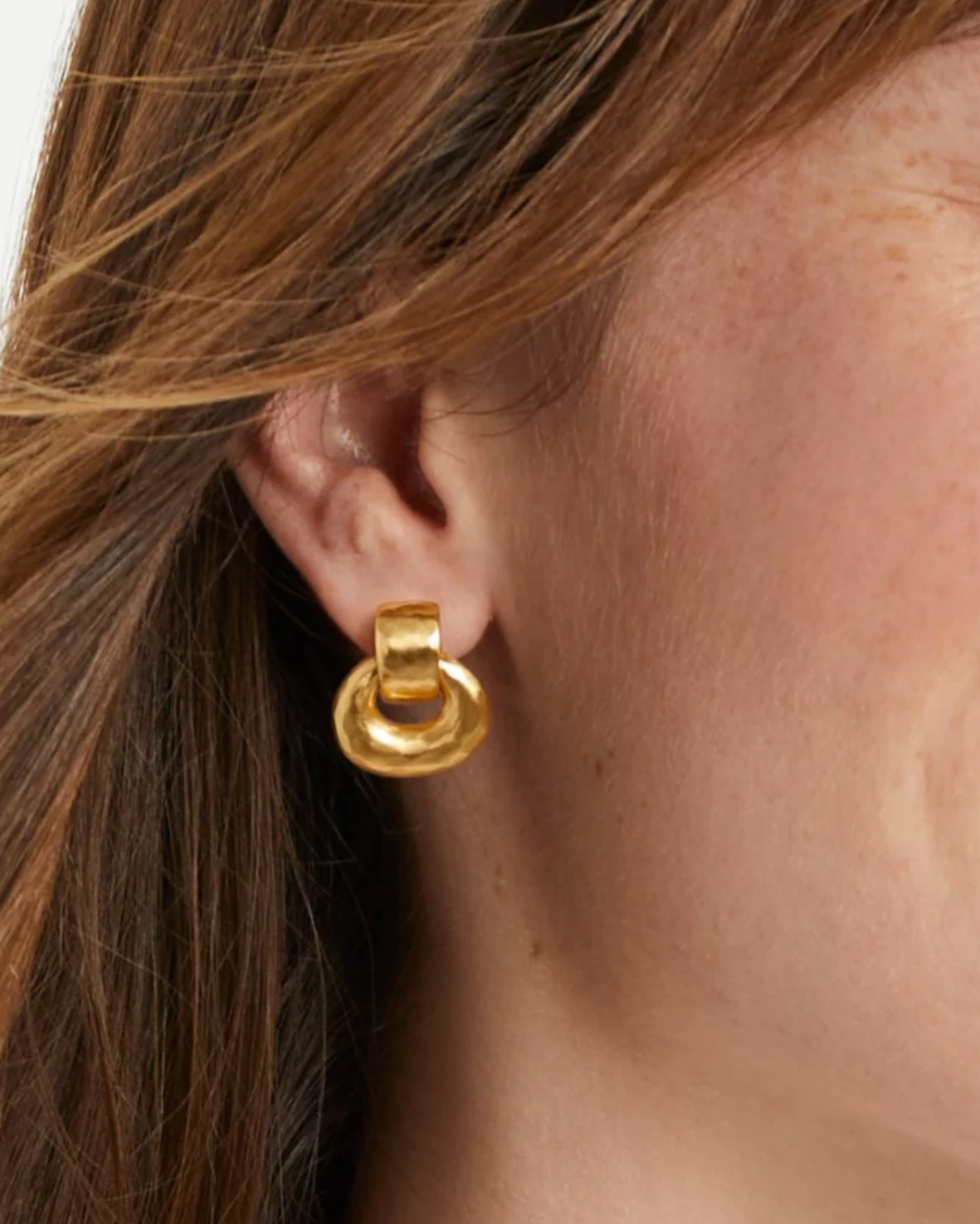This small stylish earring is lightly hammered and feels charmingly organic, yet polished and pulled together.