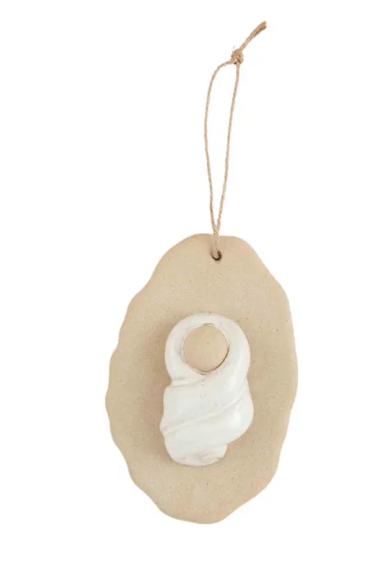 Transform your home into a magical nativity scene with our exquisite Jesus Nativity Ornament. Crafted with meticulous attention to detail, this ornament boasts a captivating layered design that adds depth and character to any space. The centerpiece features an elegant figurine that radiates grace and beauty, capturing the essence of the nativity story. Crafted from high-quality stoneware, this ornament is not only visually stunning but also built to stand the test of time. The distressed finish and unique markings on the ornament add a touch of rustic charm, infusing your home with a warm and inviting atmosphere. Measuring at 3 1/5" x 5", this Nativity Ornament is the perfect size to adorn your Christmas tree or to display on a decorative stand. Embrace the spirit of Christmas and celebrate the wonder of the nativity with this Nativity Ornament. Add it to your holiday decor collection or gift it to your loved ones, spreading joy and love this festive season.