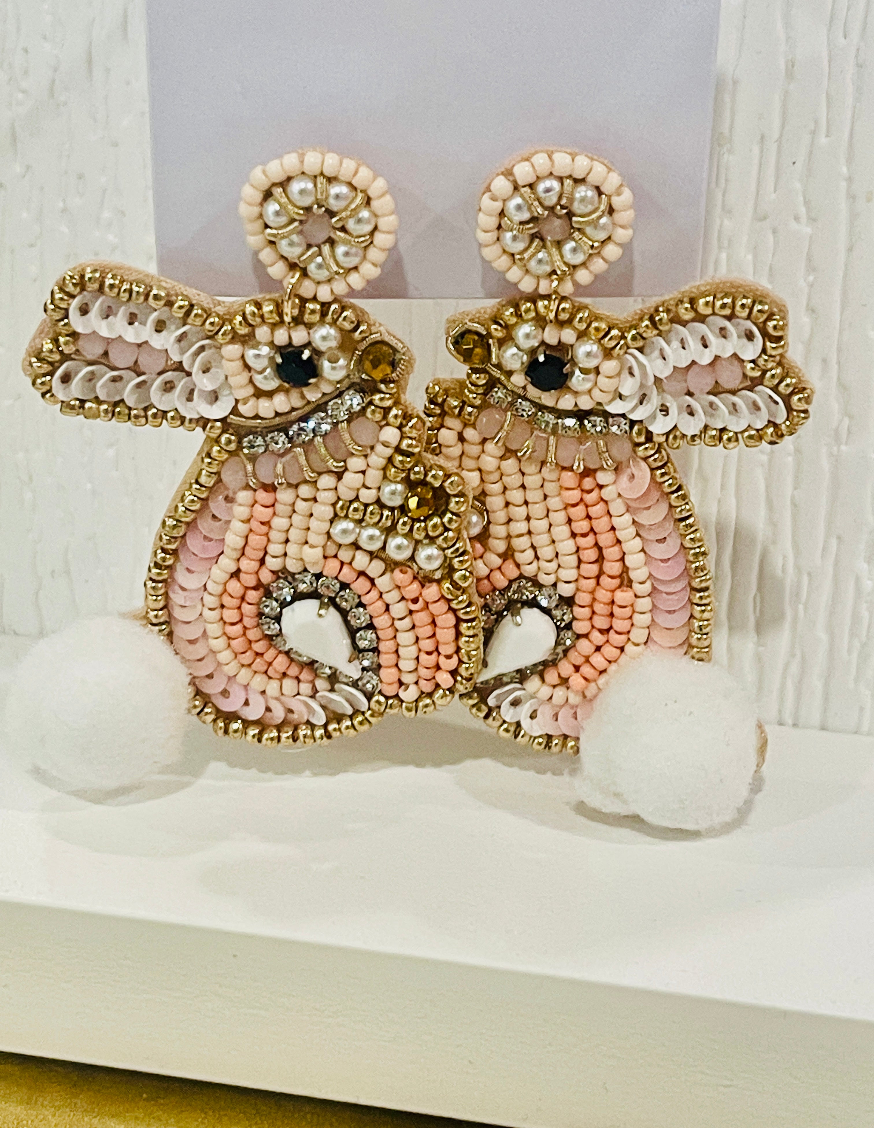 These elegant beaded bunny earrings are a stylish addition to any outfit. With intricate beading and high-quality materials, they offer a luxurious touch to your look. Perfect for any occasion, these earrings are sure to turn heads and make you feel confident and sophisticated.