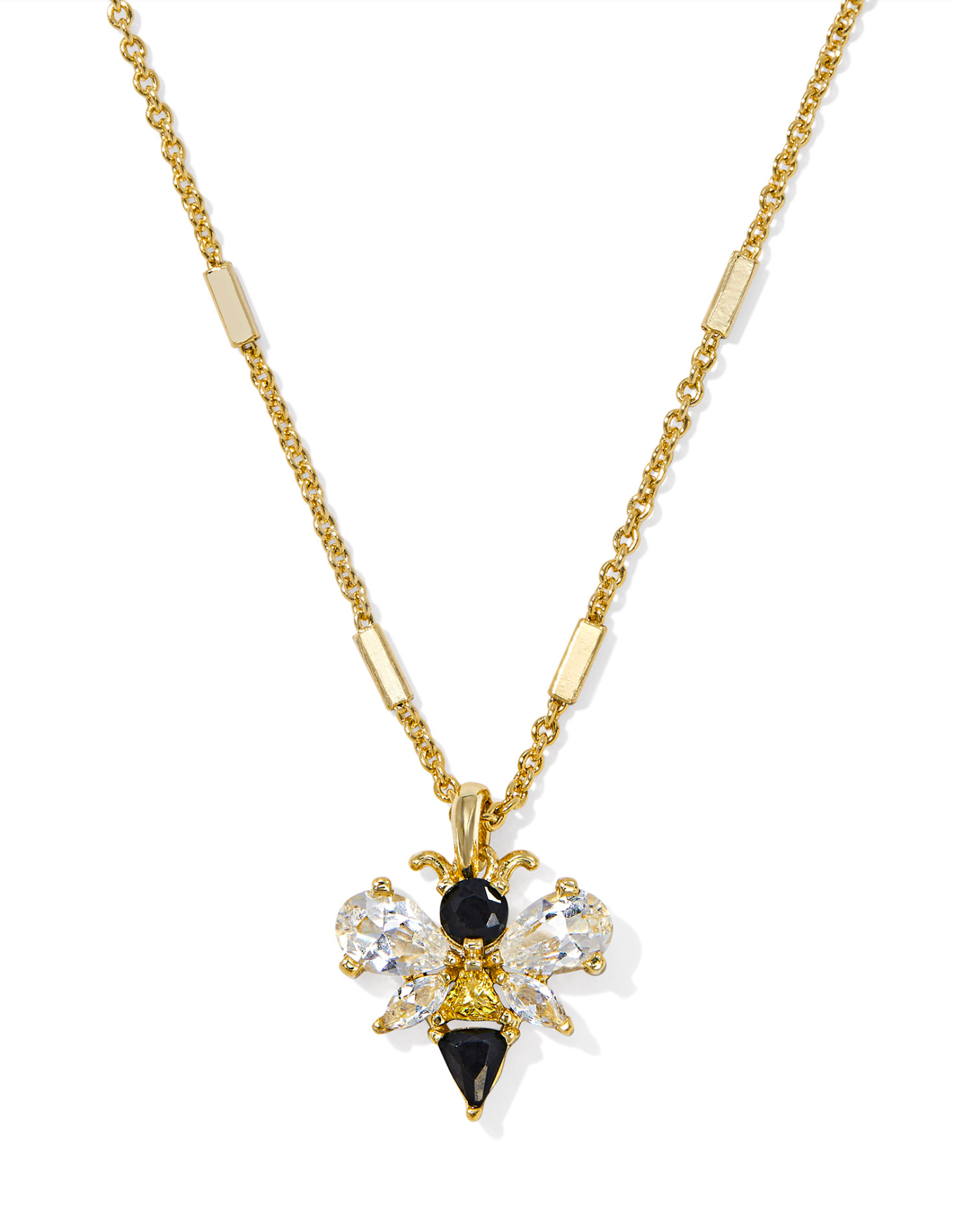 Everyone’s going to be buzzing about the Bee Gold Short Pendant Necklace in Black Yellow Mix. A mosaic arrangement of black, yellow, and clear crystals and metal details creates an adorable bumblebee, ready to add the perfect amount of sweetness to every look.