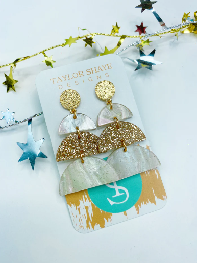 Bianca Acrylic Drops are beautifully designed with a glitter & pearl finish. These lightweight earrings add a touch of glamour to any look. Crafted from premium acrylic, each pair is durable and guaranteed to last.