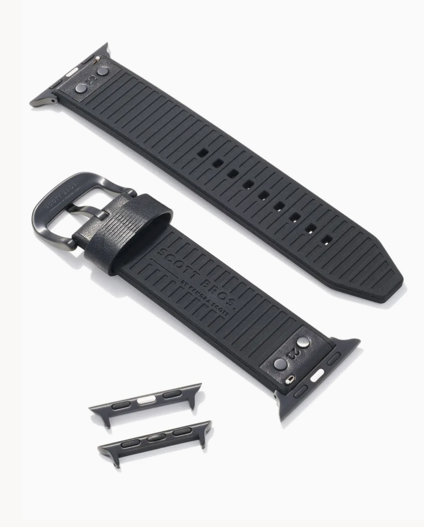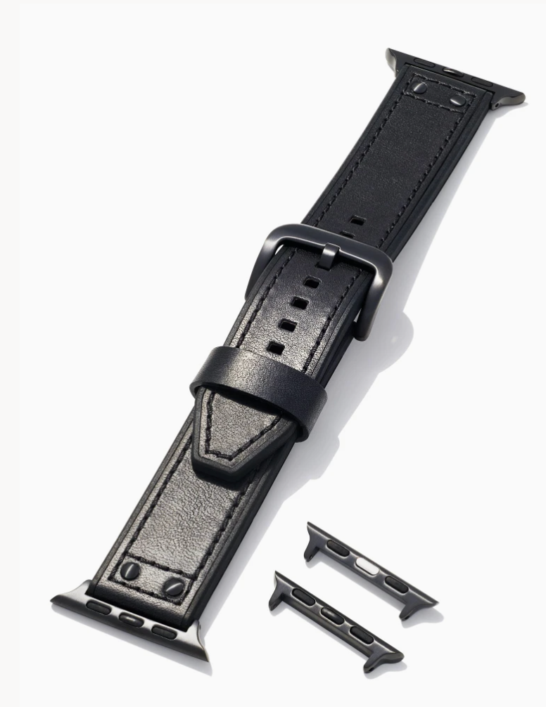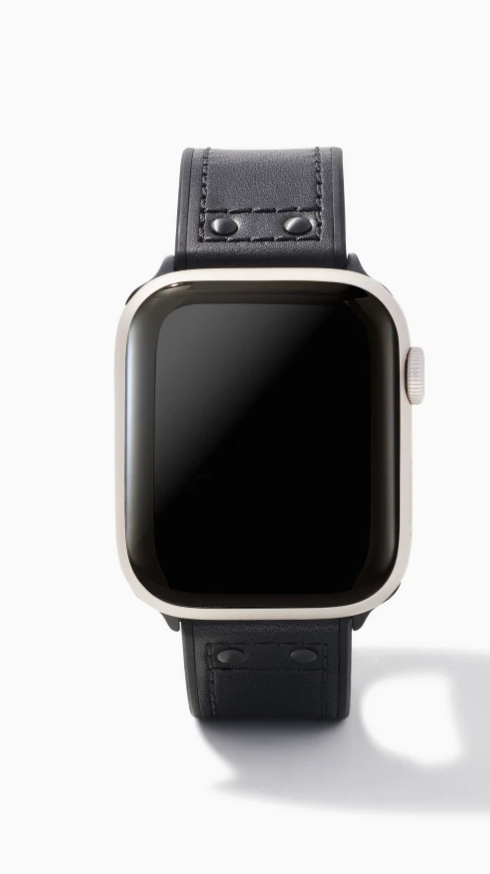 Made exclusively for your Apple Watch®, the Cade Leather Watch Band in Black is a natural complement to your modern timepiece. Featuring Black Stainless Steel accents and genuine leather, this long-lasting band pairs effortlessly with your day-to-day look. To switch up your bands, simply press down on the easy release mechanism and then align each new band to the pinholes on either side of the watch.