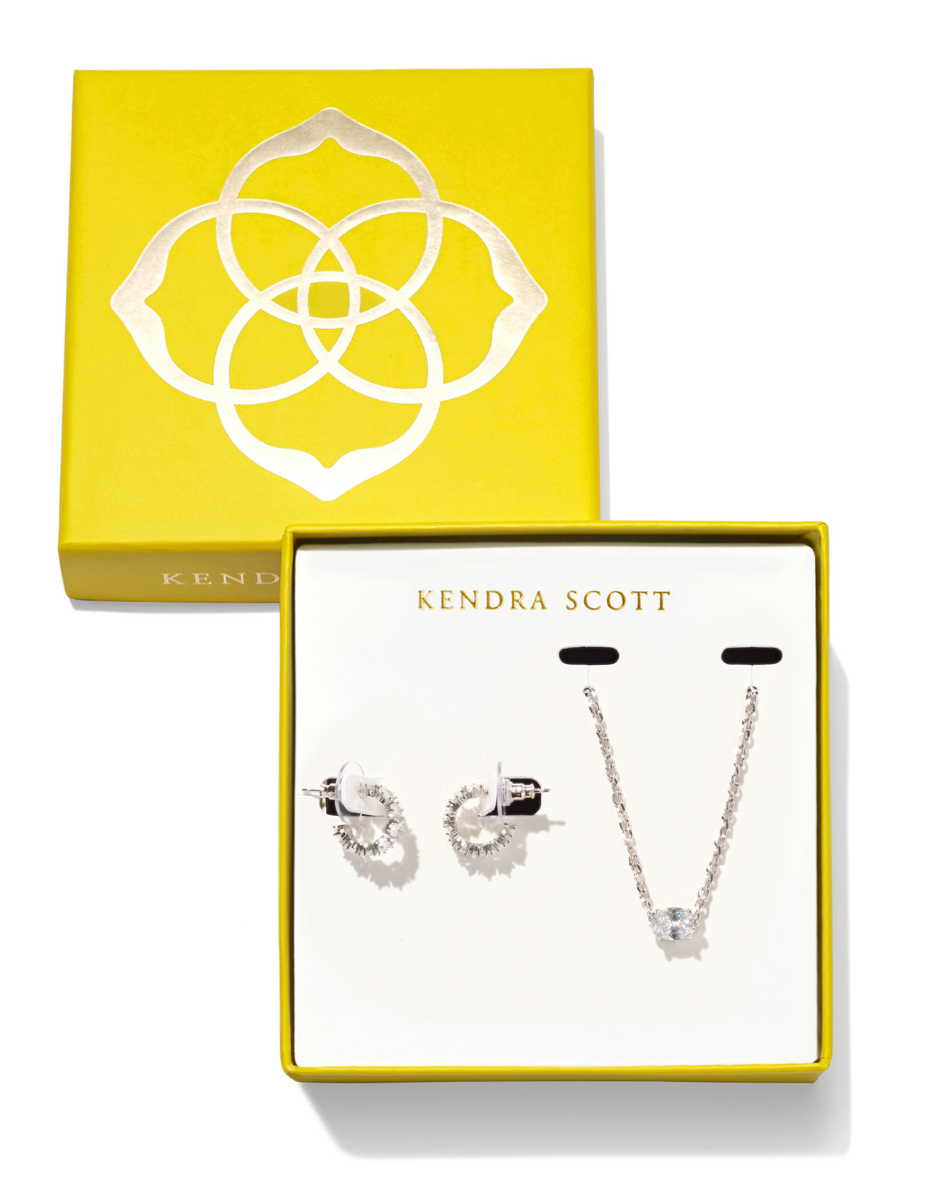 Take your everyday essentials to the next level with the Cailin Silver Crystal Gift Set of 2 in White Crystal. Combining timeless style with high-shine crystal, this precious pair is pre-wrapped and exclusively priced for easy gifting. Set includes the Cailin Pendant Necklace and Cailin Huggie Earrings.