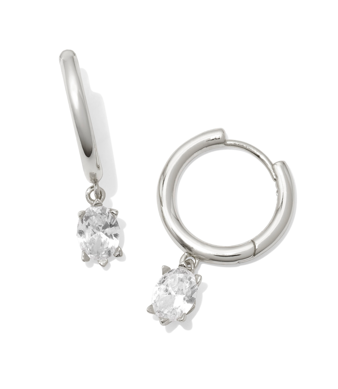CAILIN SINGLE STONE HUGGIE EARRINGS SILVER WHITE CRYSTAL