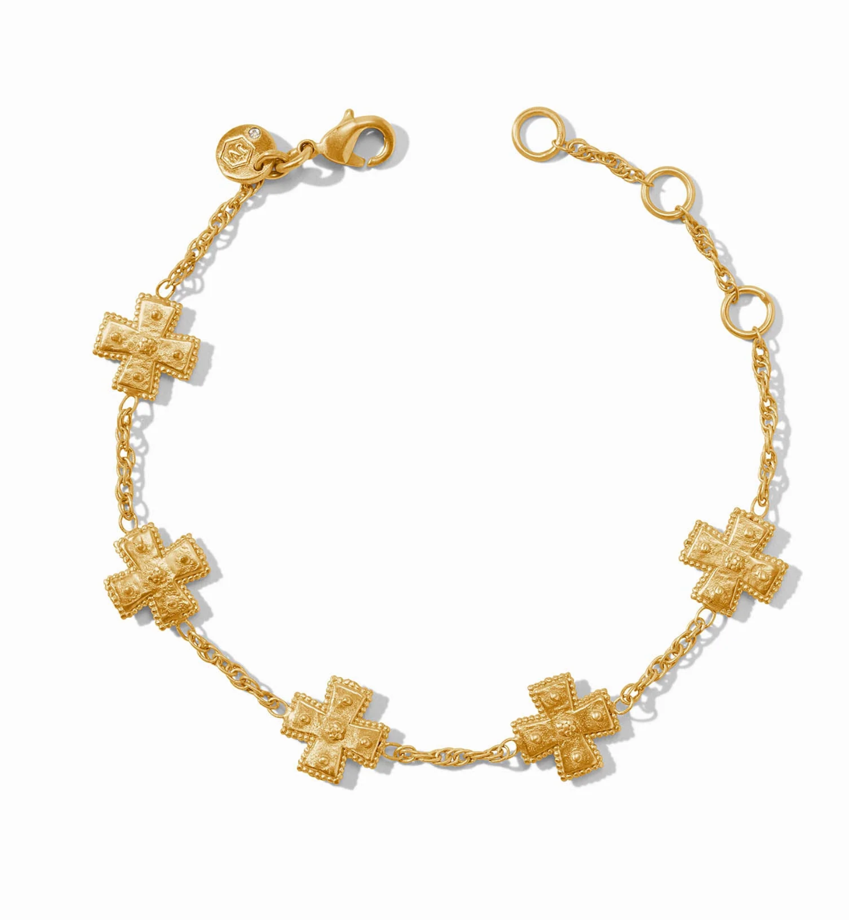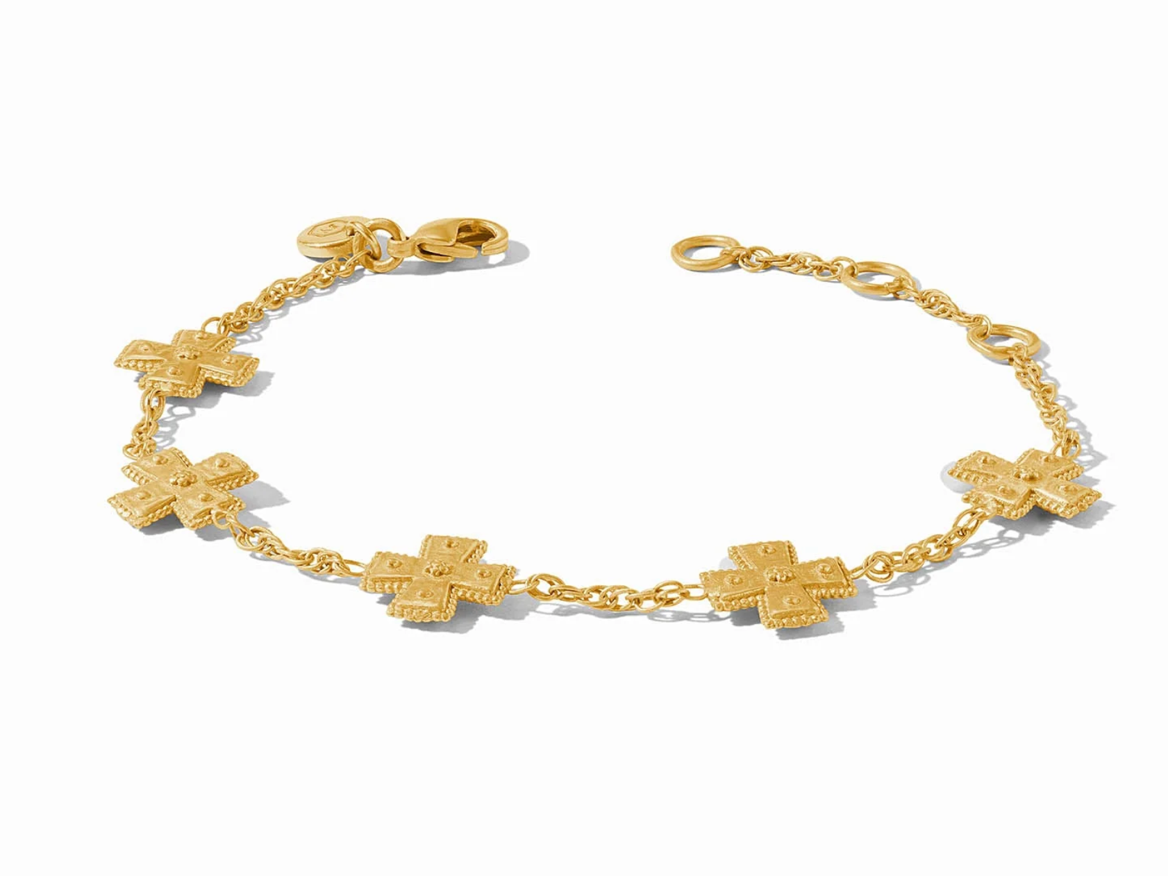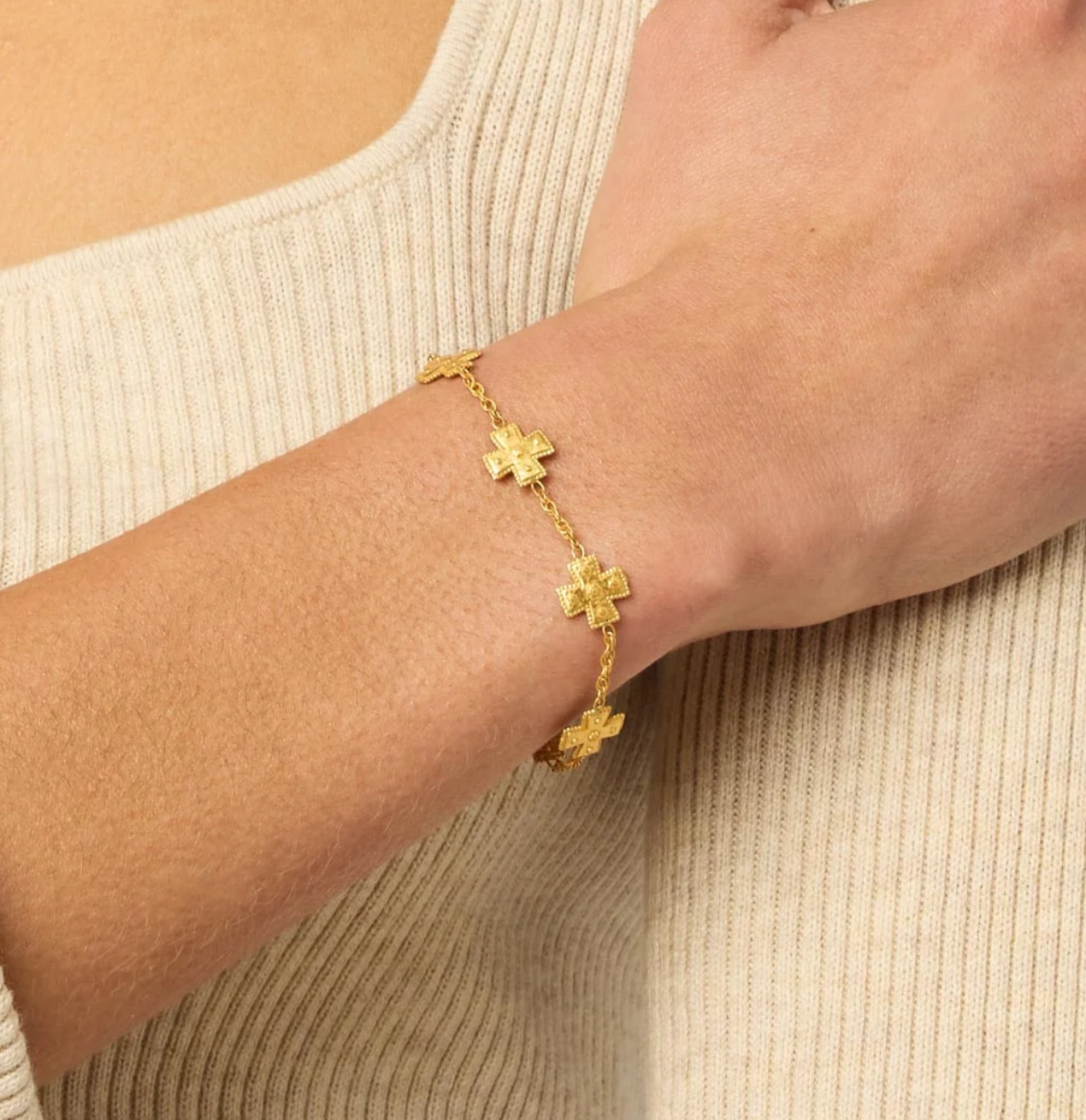 Hand-hammered crosses decorated with golden beads, connected with delicate gold rope chain.