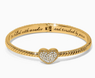 Etched into the band of this delicate bracelet are the words, Be filled with wonder and touched by peace. Inspired by the constellations, the Celestia Heart Hinged Bangle features a heart with fine quality crystals.