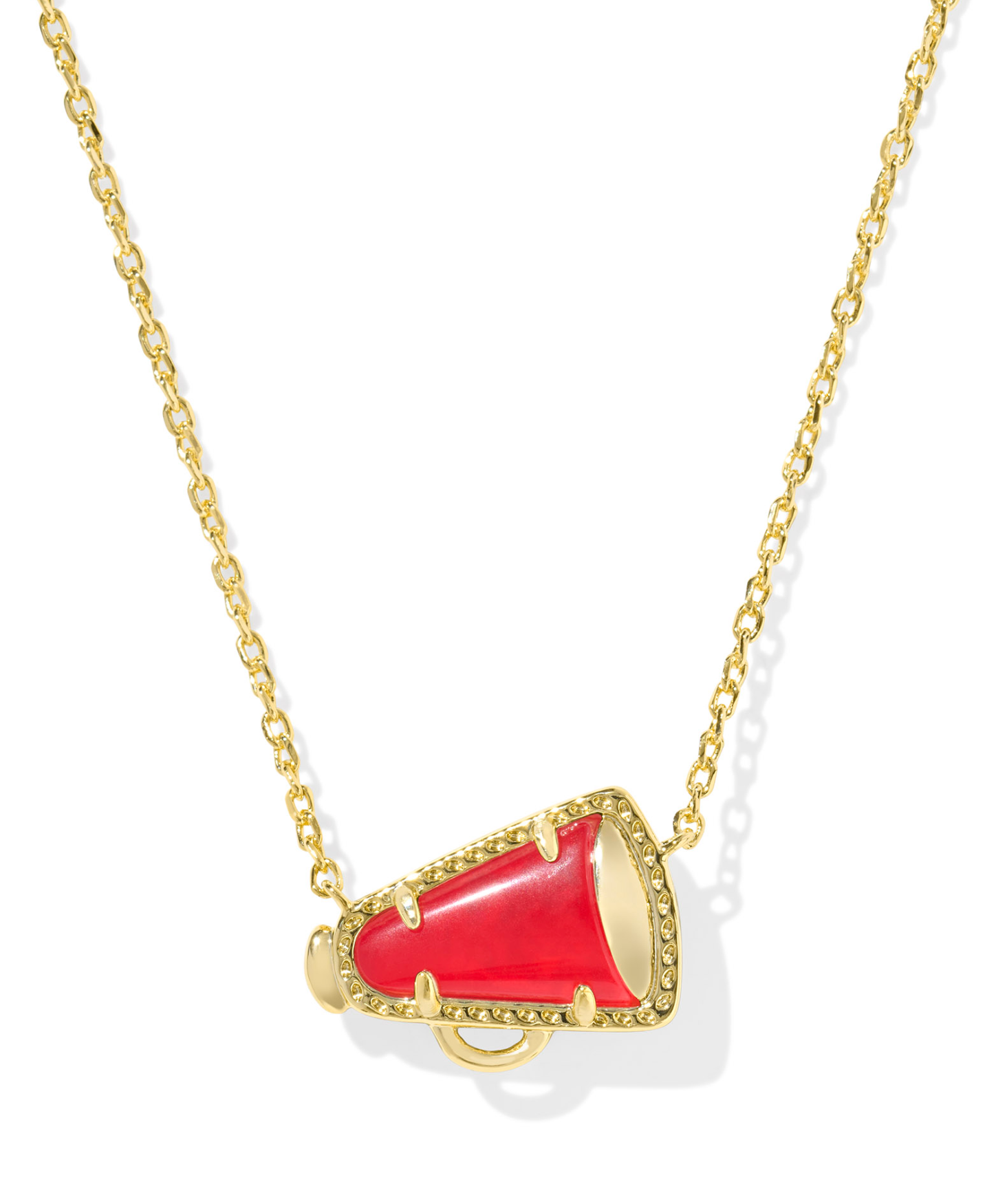 Give me a K! Give me an S! Give me a Cheer Gold Short Pendant Necklace in Red Illusion! Minimal but full of cheer, this adorable megaphone pendant is framed by our signature hoofprint detailing for that special KS touch. Stack up some extra spirit and pair this pendant with styles in your team’s colors