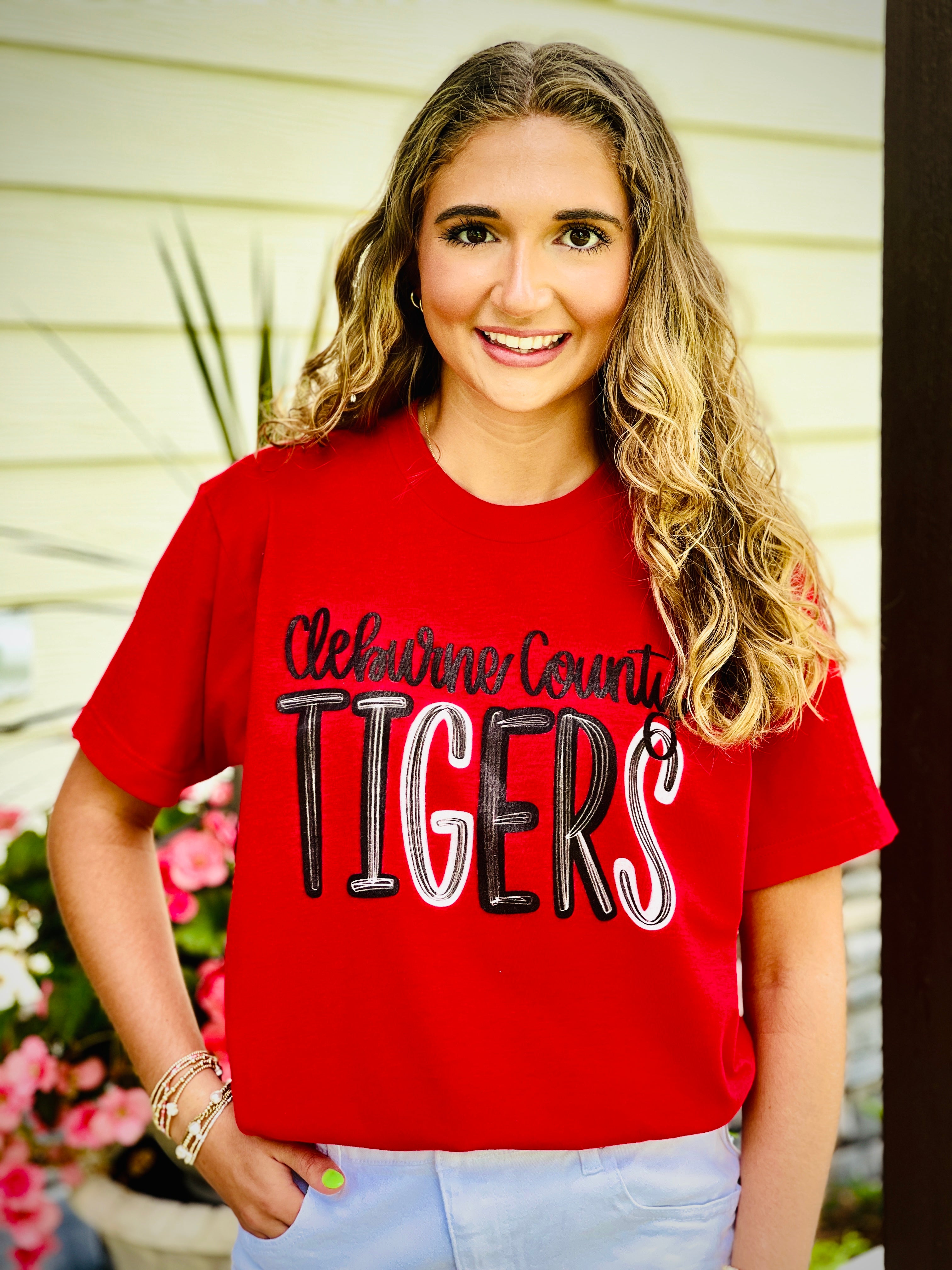 Looking for the perfect shirt to wear on game day? Look no further than the Cleburne County Tigers Game Day Tee! Made with high-quality materials, this tee is comfortable and durable. With its bold design featuring the Cleburne County Tigers logo, you'll show off your team pride with style. Perfect for any fan or player.