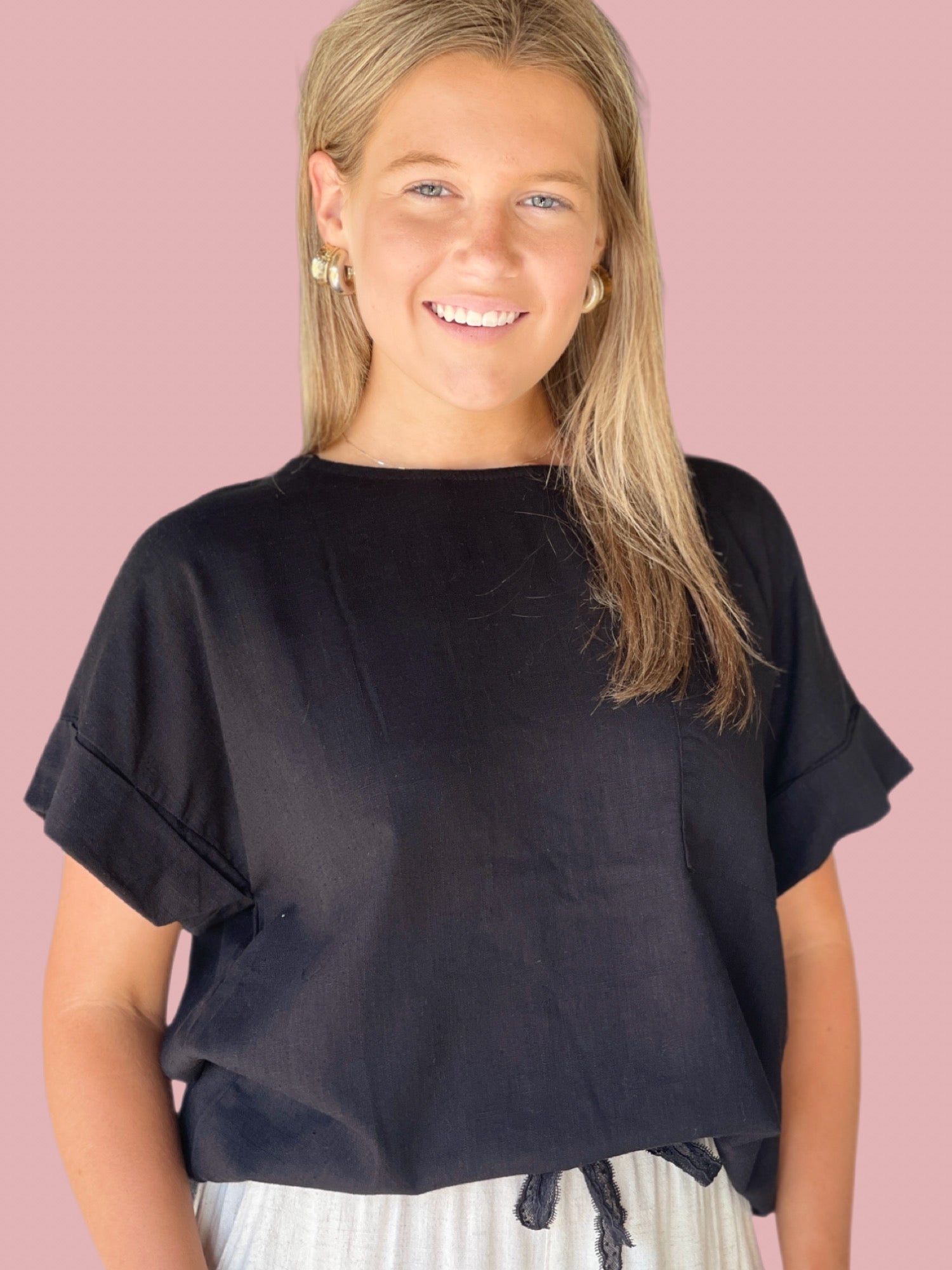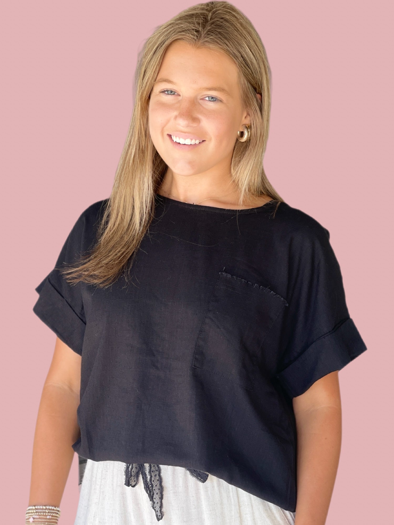 Expertly crafted from a luxurious linen blend, this top offers a comfortable and stylish option for any occasion. The cuffed sleeves and frayed hemline add unique details, while the linen fabric provides breathability and comfort. Perfect for adding a touch of sophistication to your wardrobe.