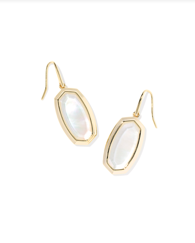 DANI BEZEL DROP EARRINGS GOLD IVORY MOTHER OF PEARL