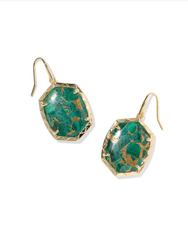 DAPHNE DROP EARRINGS GOLD BRONZE VEINED GREEN MALACHITE