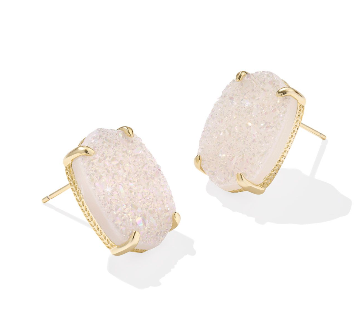 The Daphne Gold Large Stud Earrings in Iridescent Drusy are a chic way to turn heads with little to no effort. These were intentionally crafted without a frame so the oversized stone can catch the light and keep you shining from every angle.