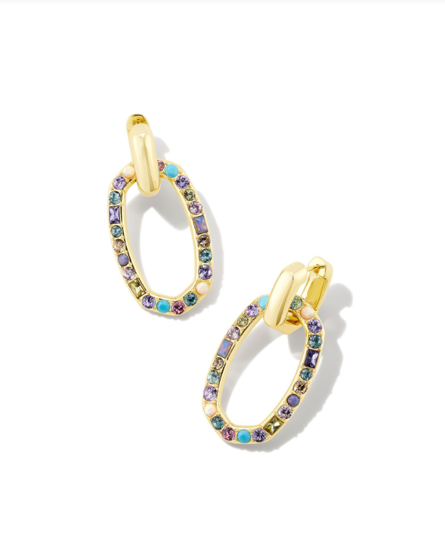Devin Crystal Link Earrings in Pastel Mix Add a dynamic style to your ear stack with the Devin Crystal Link Earrings in Pastel Mix. These open frame earrings are lined with crystals and will have you shining from every angle. Plus, you can remove the crystal link for a chic huggie look!