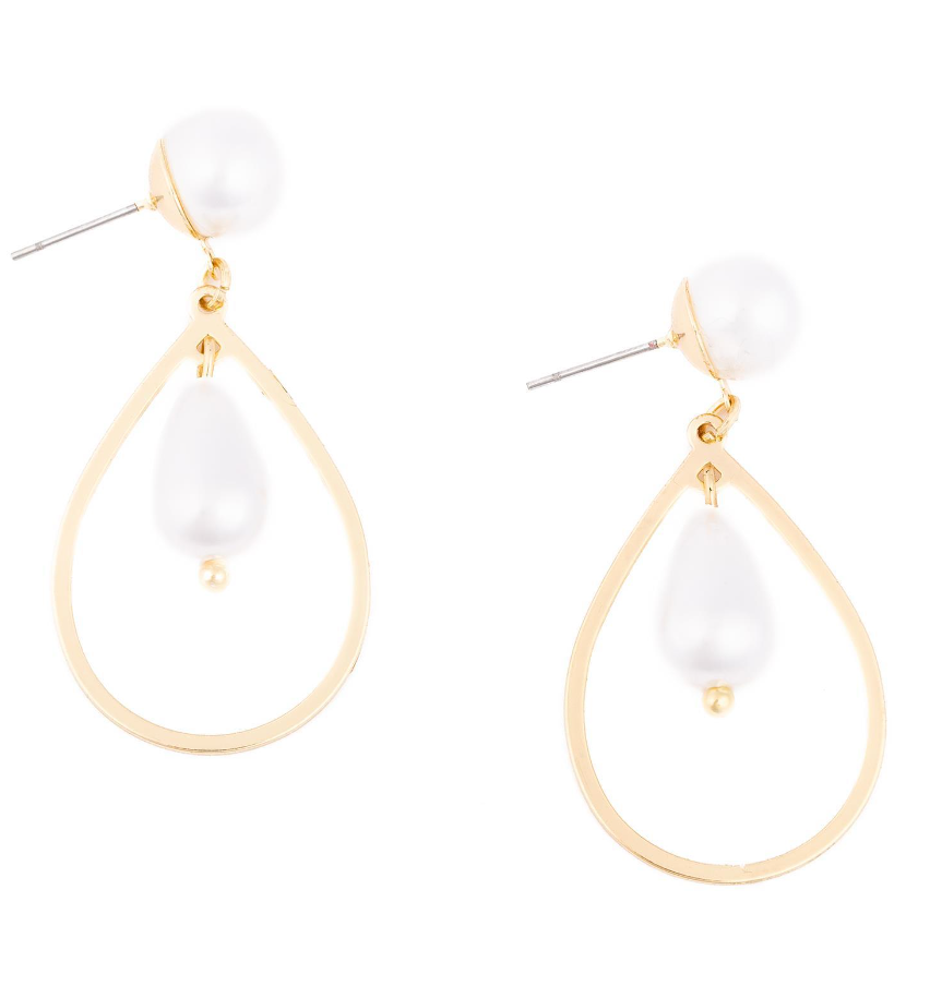 These brass plated teardrop earrings feature elegant pearl accents, adding sophistication to any outfit. The 2" size ensures a noticeable yet tasteful look. Elevate your style with these timeless and versatile earrings.