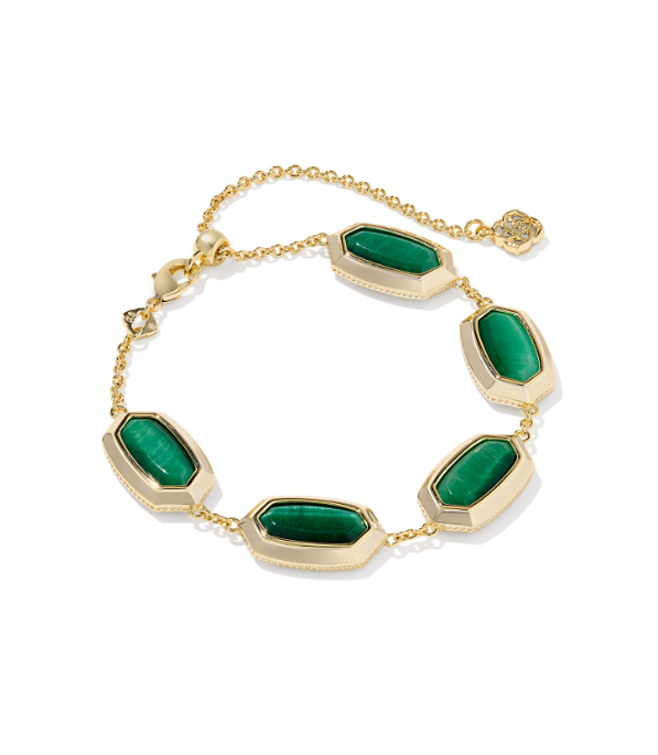 ELAINA BEZEL DELICATE CHAIN BRACELET GOLD GREEN TIGERS EYE