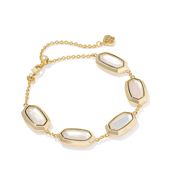ELAINA BEZEL DELICATE CHAIN BRACELET GOLD IVORY MOTHER OF PEARL