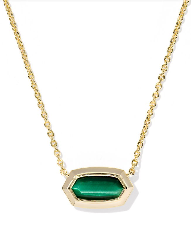 ELISA BEZEL SHORT PENDANT NECKLACE GOLD GREEN TIGERS EYE