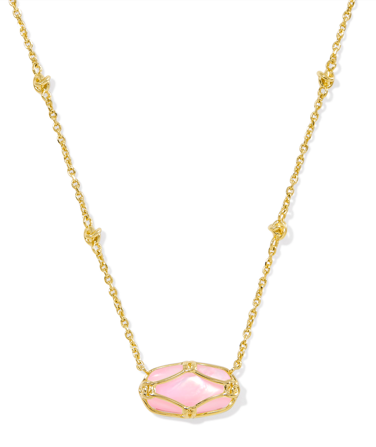 ELISA LATTICE FRAME SHORT PENDANT NECKLACE GOLD BLUSH IVORY MOTHER OF PEARL