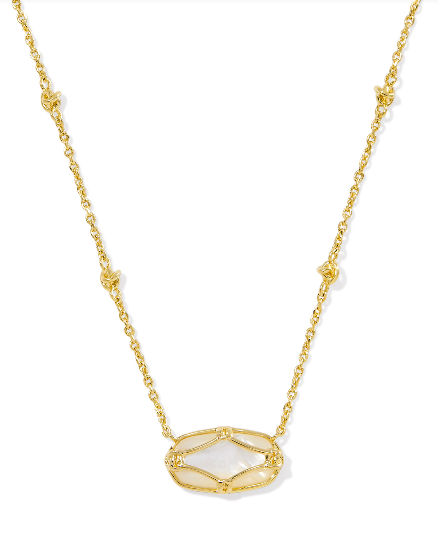 ELISA LATTICE FRAME SHORT PENDANT NECKLACE GOLD IVORY MOTHER OF PEARL