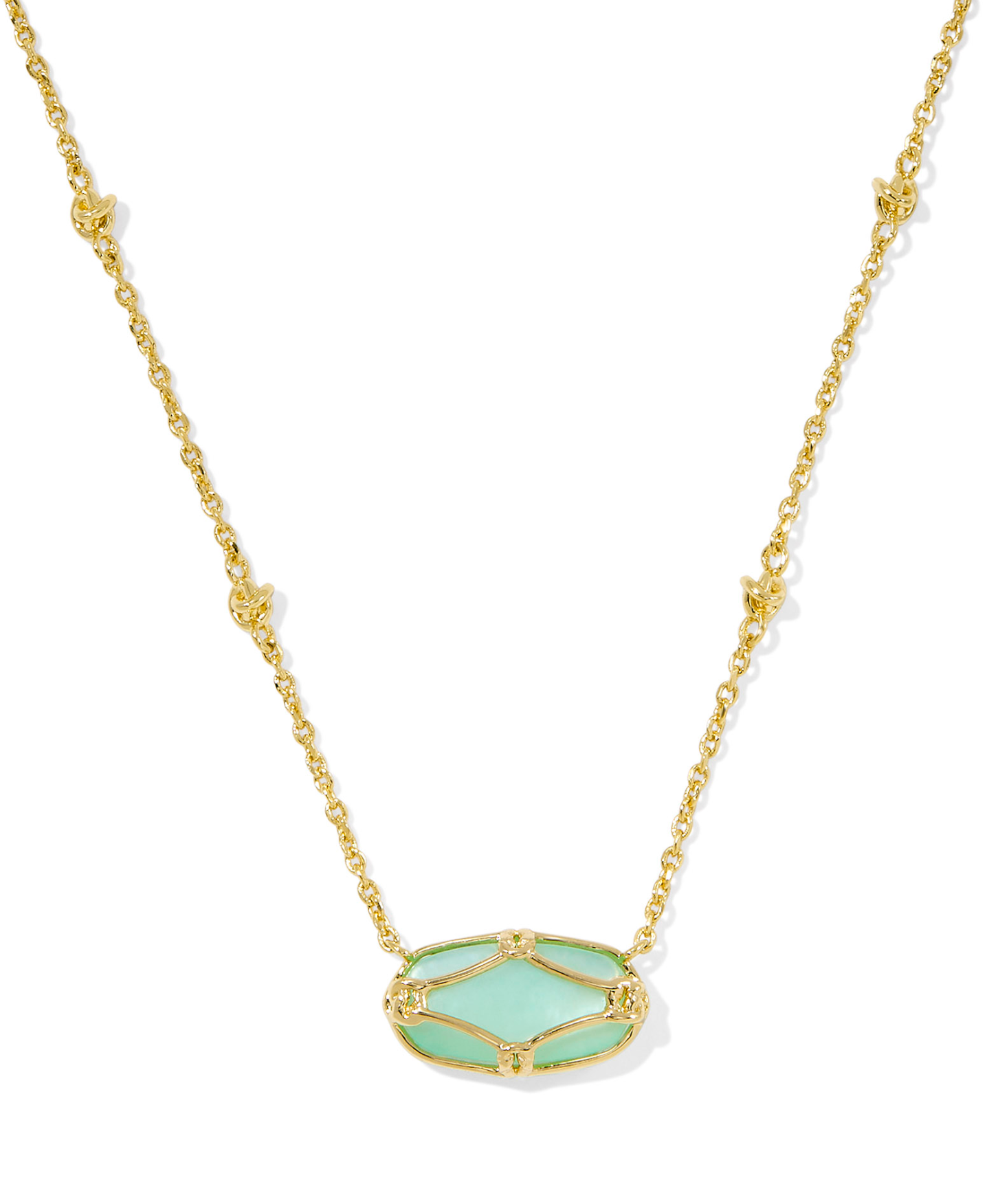 ELISA LATTICE FRAME SHORT PENDANT NECKLACE GOLD LIGHT GREEN MOTHER OF PEARL
