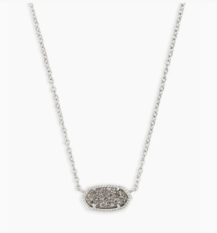 A dainty stone and delicate metallic chain combine to create the Elisa Silver Pendant Necklace in Platinum Drusy, your new favorite wear-anywhere accessory. This pendant necklace can be paired with any look, providing that extra touch of timeless style. Make the Elisa Silver Necklace a staple in your wardrobe and you will not be disappointed.