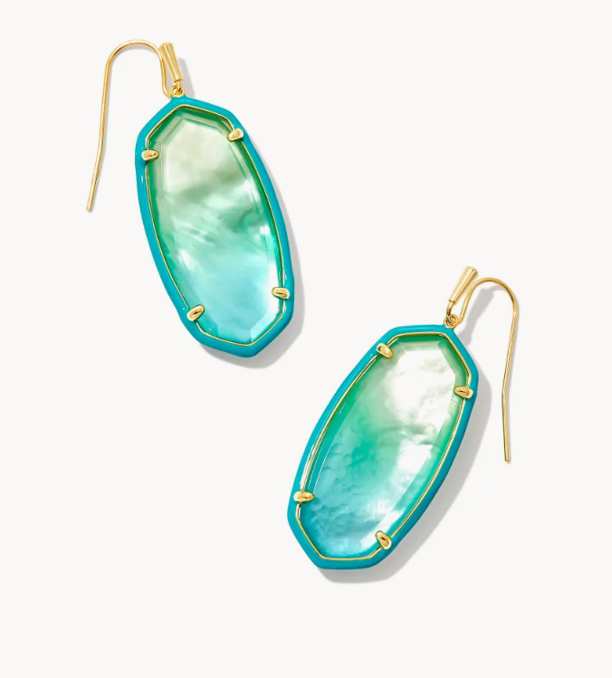 The Elle Gold Enamel Framed Drop Earrings in Sea Green Chrysocolla are inlaid with an ombre stone and framed by a pop of colorful enamel, creating a fun take on our best-selling icon. Perfect for both every day and special occasions, these one-of-a-kind earrings are your new go-to.