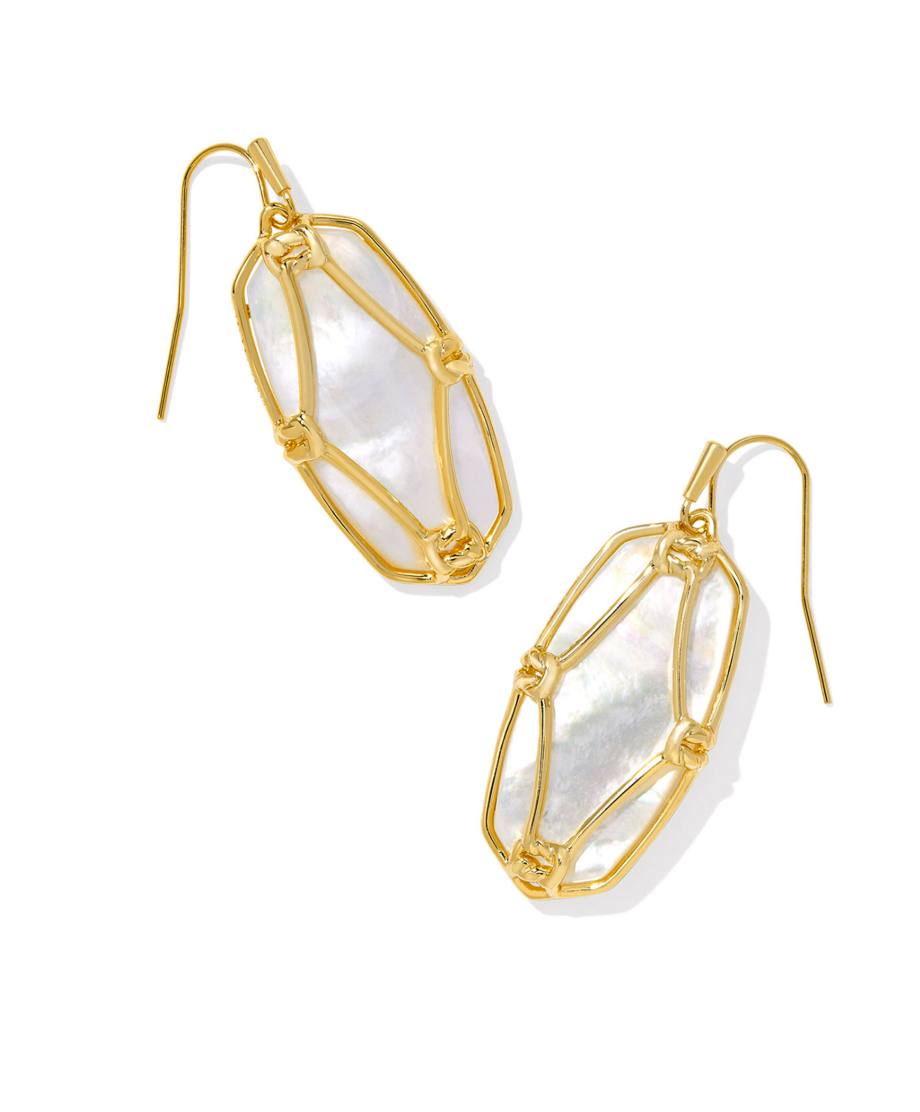 Our iconic eye-catching earrings have a new artistic twist in the Elle Lattice Frame Gold Drop Earrings in Ivory Mother of Pearl. With a new metalwork technique inspired by the texture of lace, these earrings were made to stand out with a bold elegance and beautiful colors that fit into any collection.