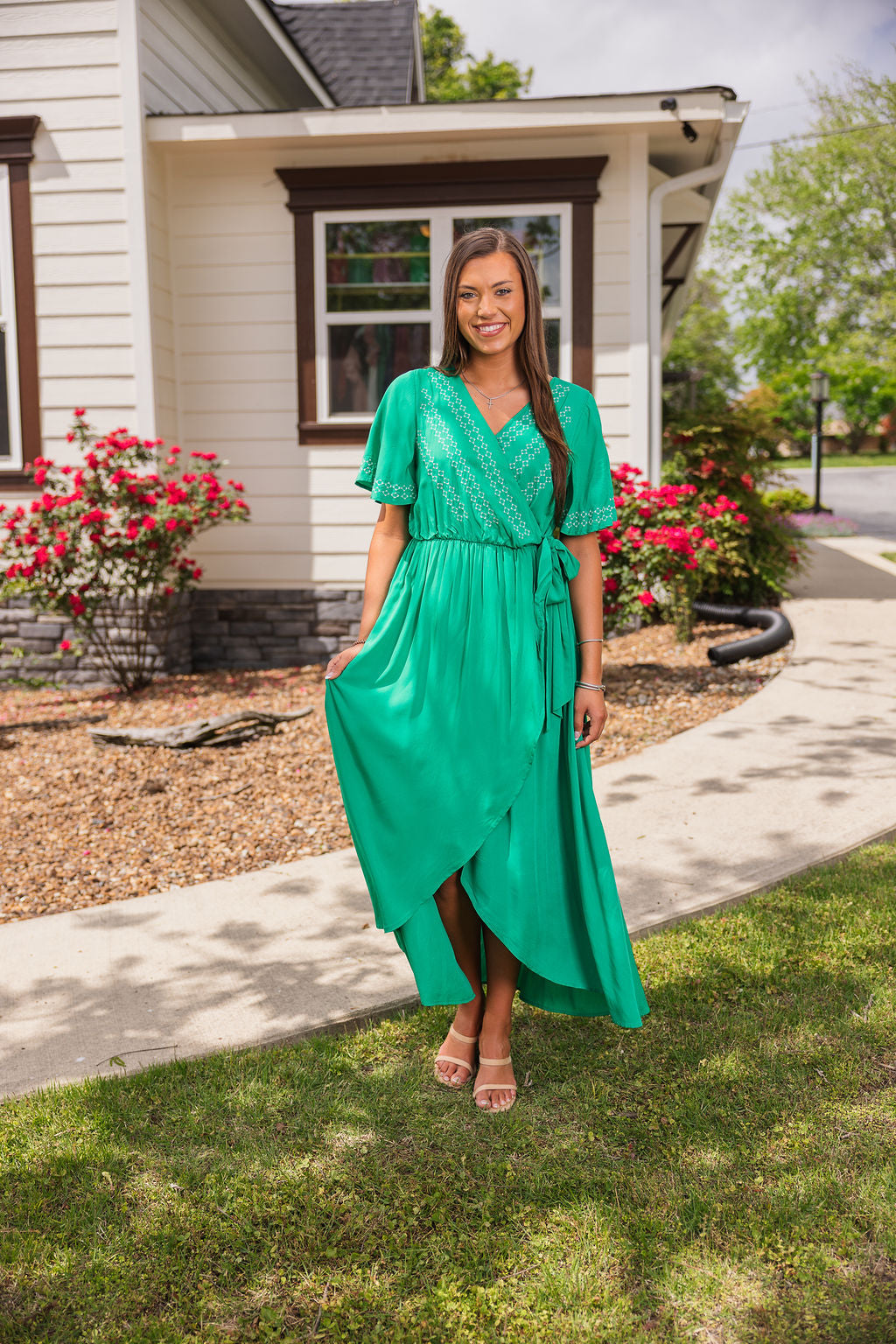 Embroidered Grace Wrap Dress