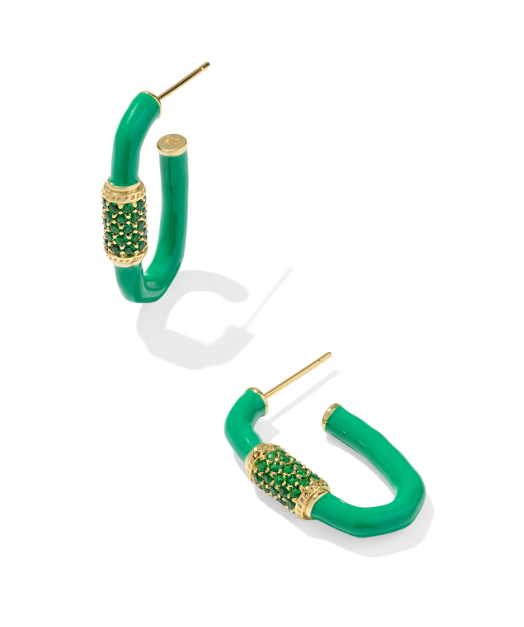 EMERY ENAMEL HOOP EARRINGS GOLD GREEN MIX