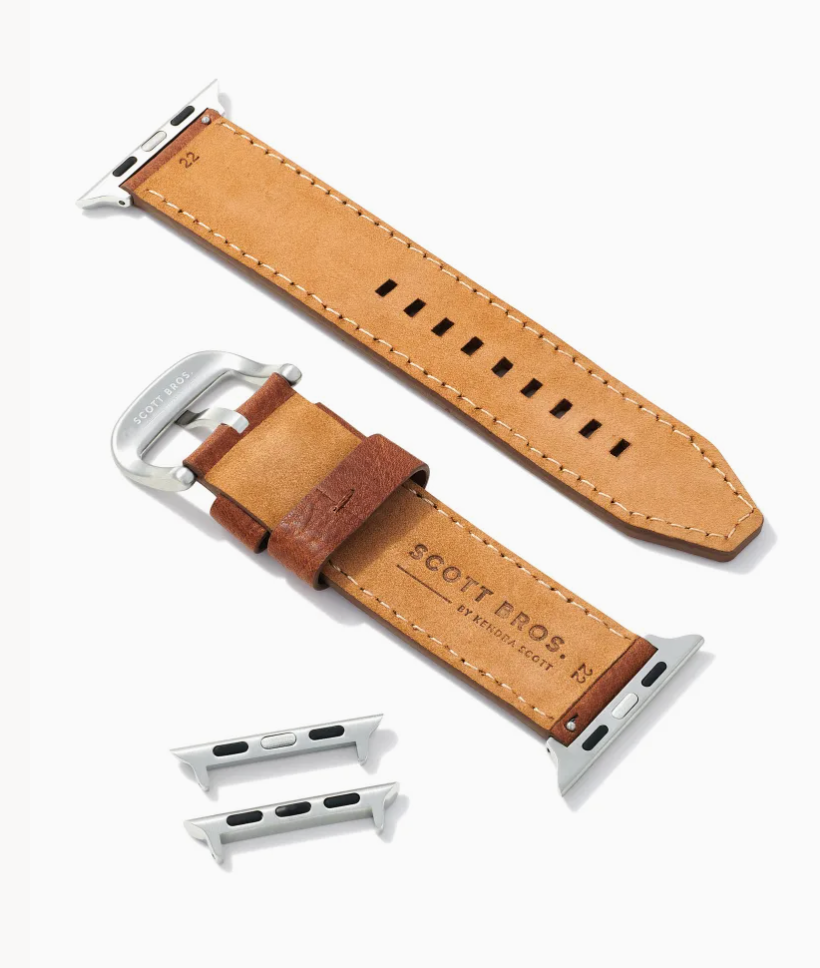 Designed exclusively for your Apple Watch®, the Evans Leather Watch Band in Luggage is crafted with Stainless Steel hardware and genuine Italian leather to instantly elevate and transform your everyday. To switch up your bands, simply press down on the easy release mechanism and then align each new band to the pinholes on either side of the watch.
