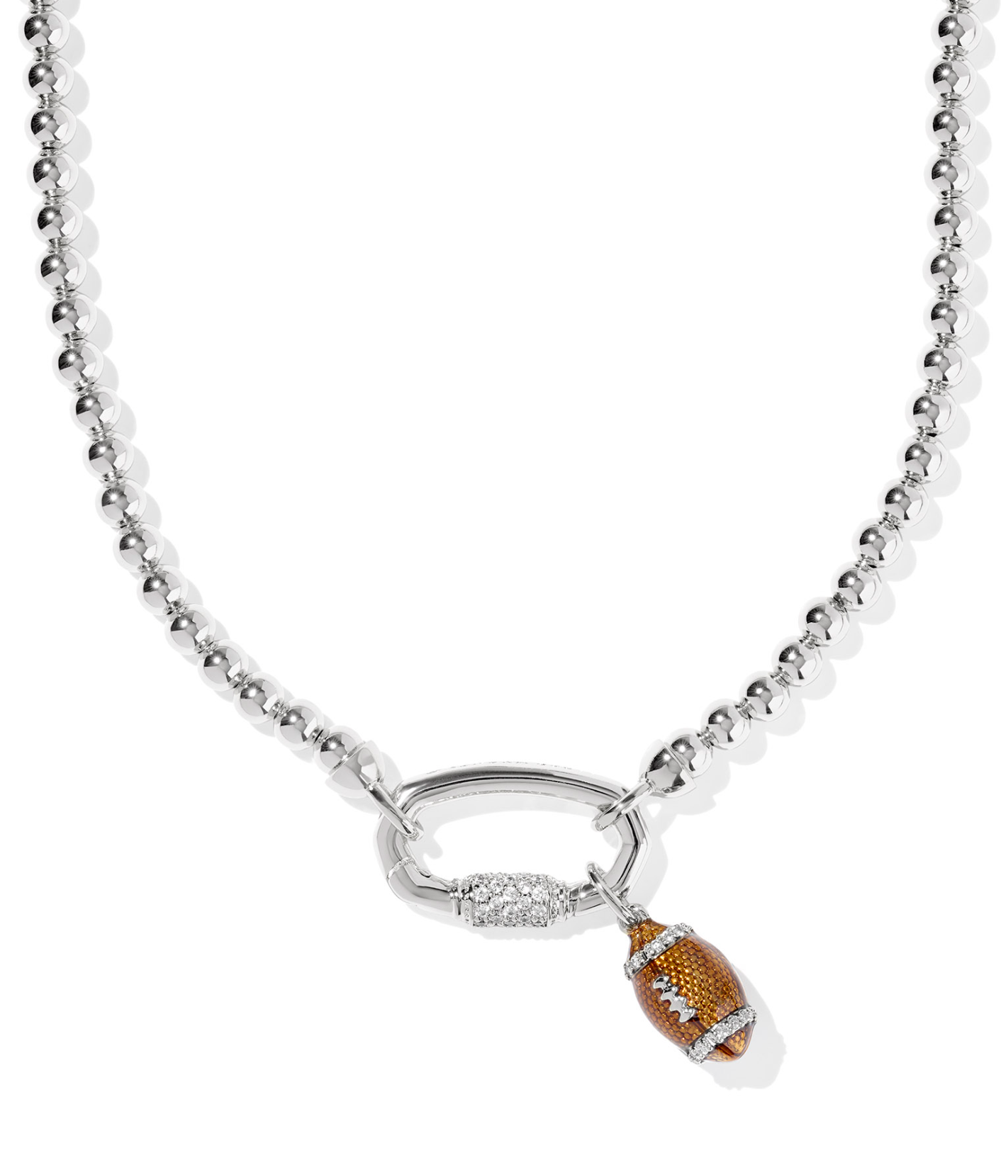 Show everyone you’re here to play with the Football Silver Metal Strand Necklace. Featuring high-shine metal beads, an open frame take on our iconic Elisa silhouette, and the cutest football charm, this necklace makes it easy to add a sporty touch to any outfit.