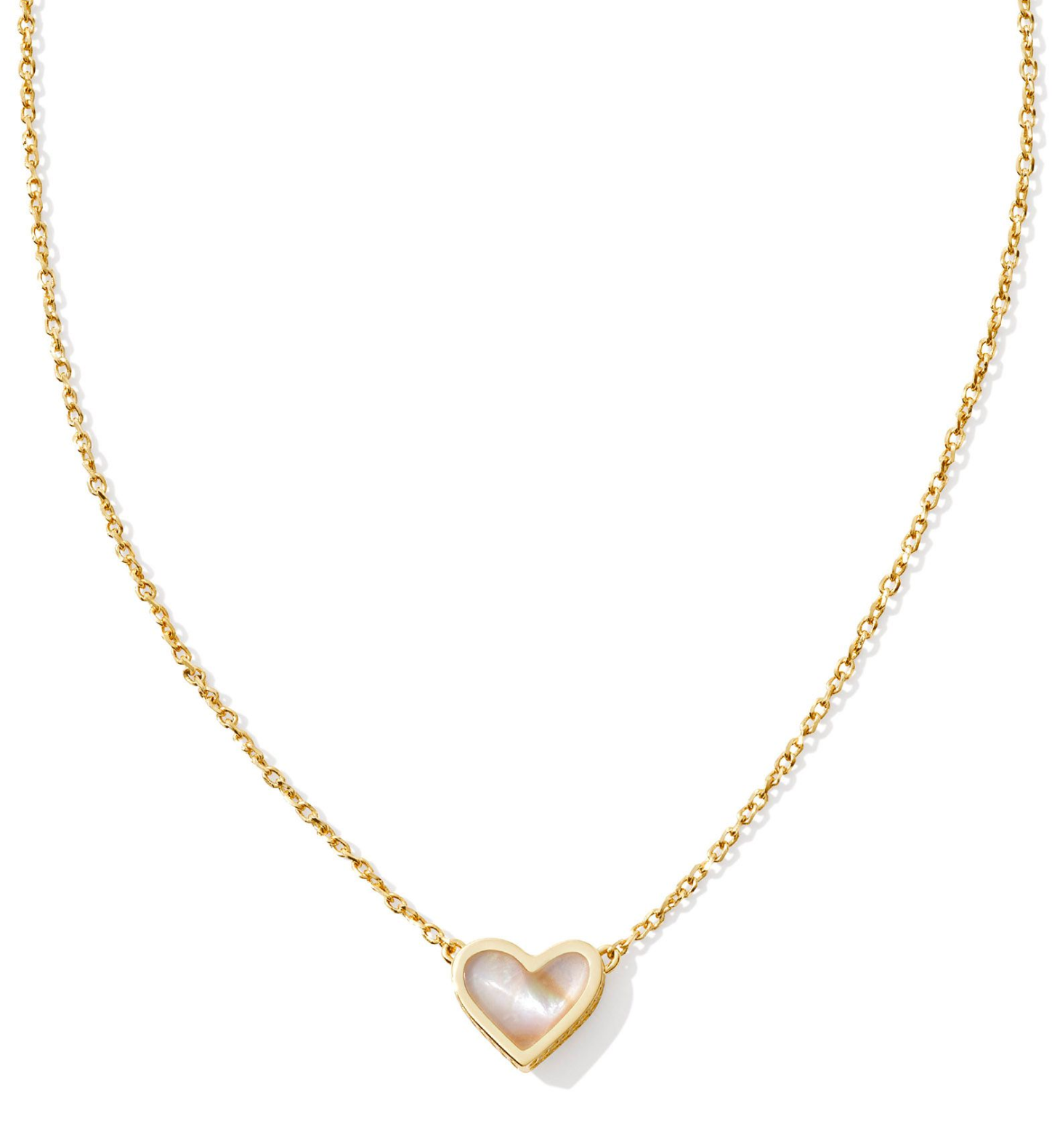 FRAMED ARI HEART SHORT PENDANT NECKLACE GOLD IRIDESCENT ABALONE