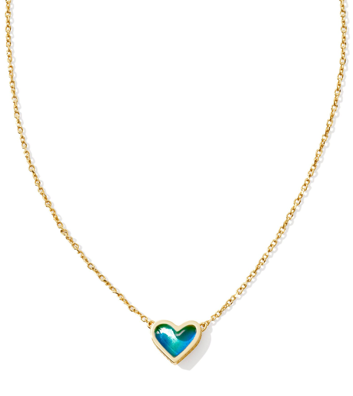 FRAMED ARI HEART SHORT PENDANT NECKLACE GOLD MOOD STONE
