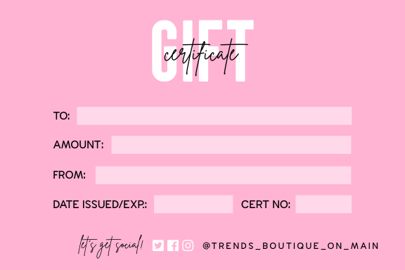 Shopping for someone else but not sure what to give them? Give them the gift of choice with a Trends Boutique on Main gift card.