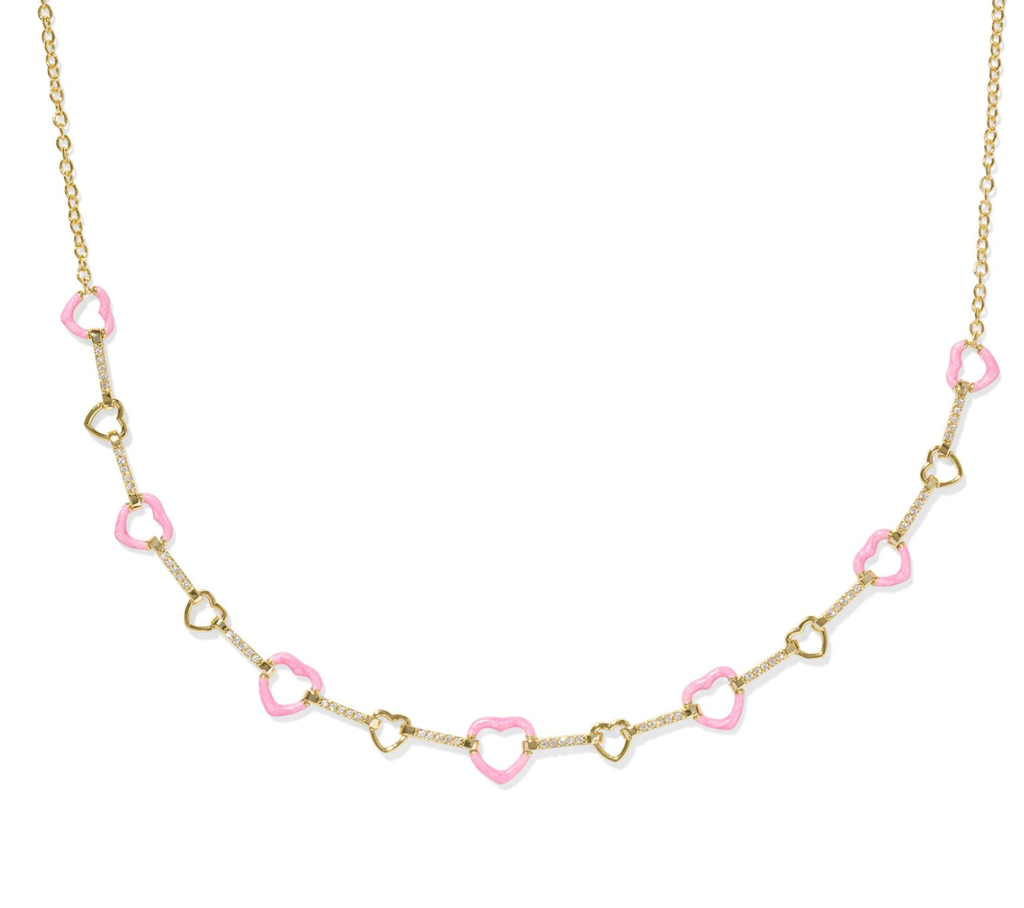 HAISLEY HEART STRAND NECKLACE GOLD PINK PEARLESCENT ENAMEL