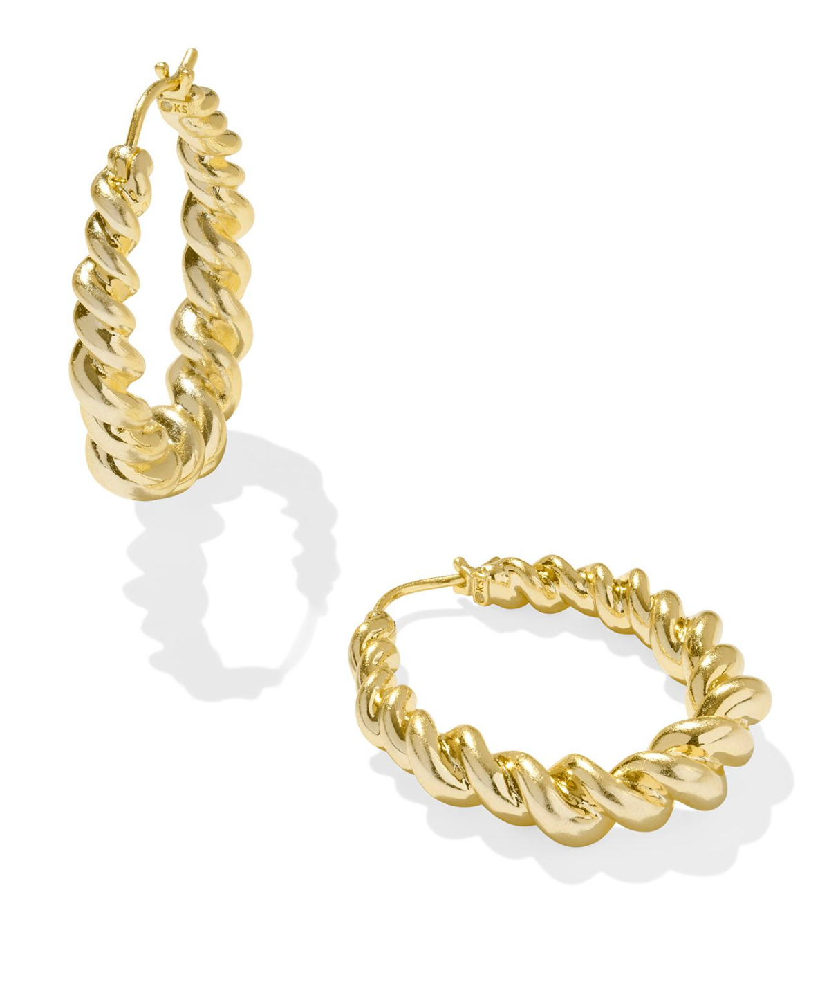 The Haisley Hoop Earrings in Gold are about to be your newest obsession. A callback to vintage hoop designs, these earrings feature a silhouette inspired by twisted ribbons that gives them a beautiful, dimensional shine