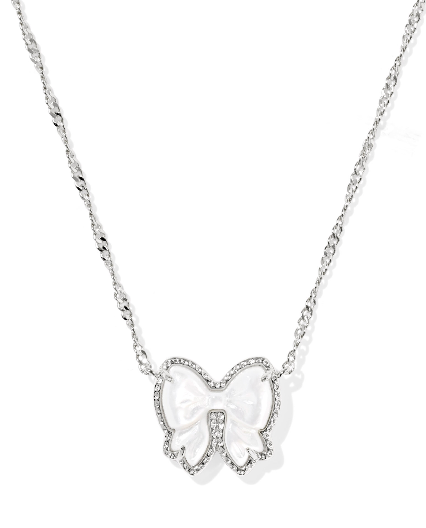 HALEY BOW SHORT PENDANT NECKLACE SILVER IVORY MOTHER OF PEARL