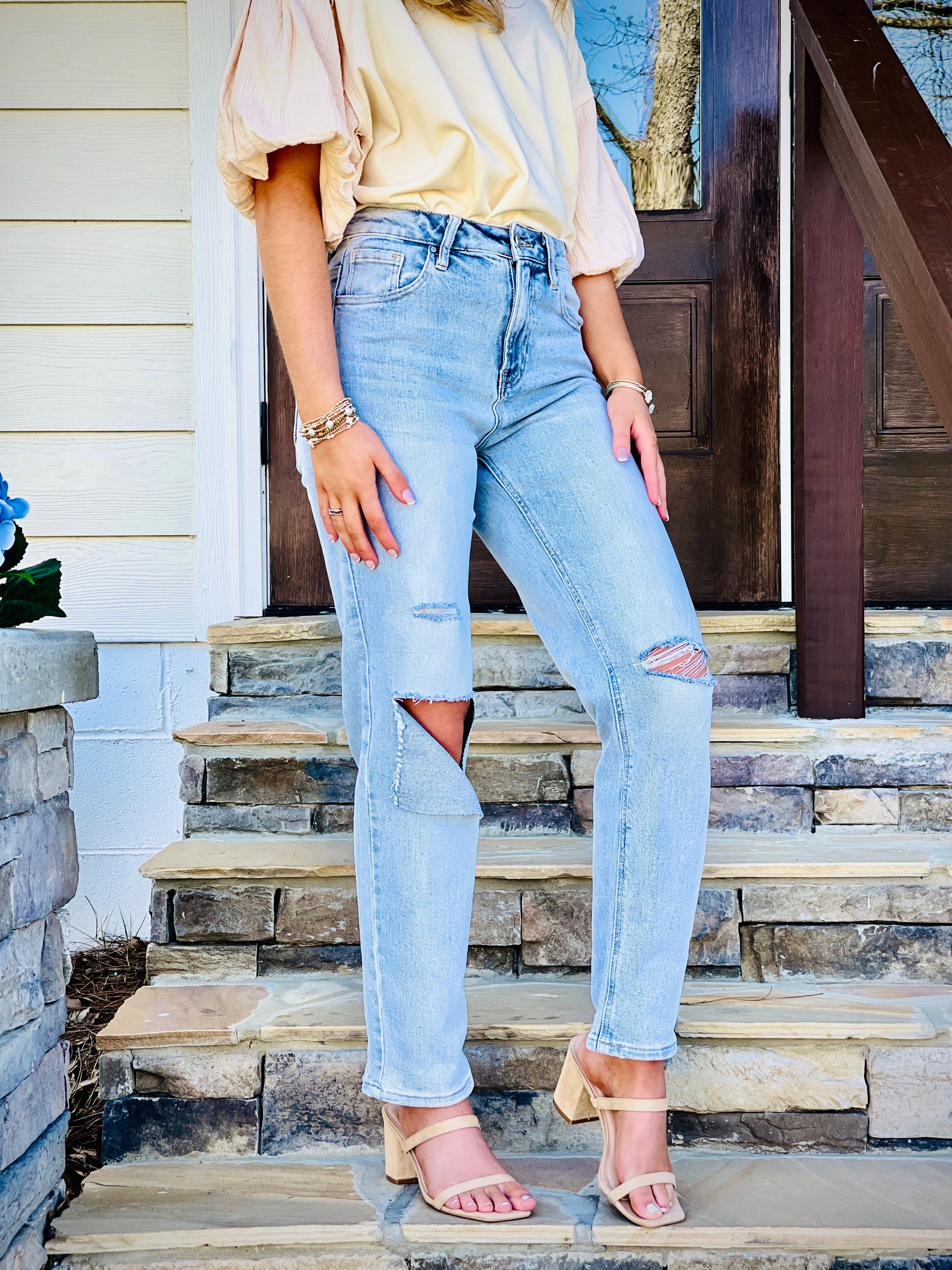 Get a comfortable and stylish look with HIGH RISE RELAXED JEANS by Risen. These jeans are perfect for any occasion, providing a relaxed fit that flatters your figure. Made with high-quality materials, they offer durability and long-lasting wear. Boost your wardrobe with these versatile and trendy jeans today.