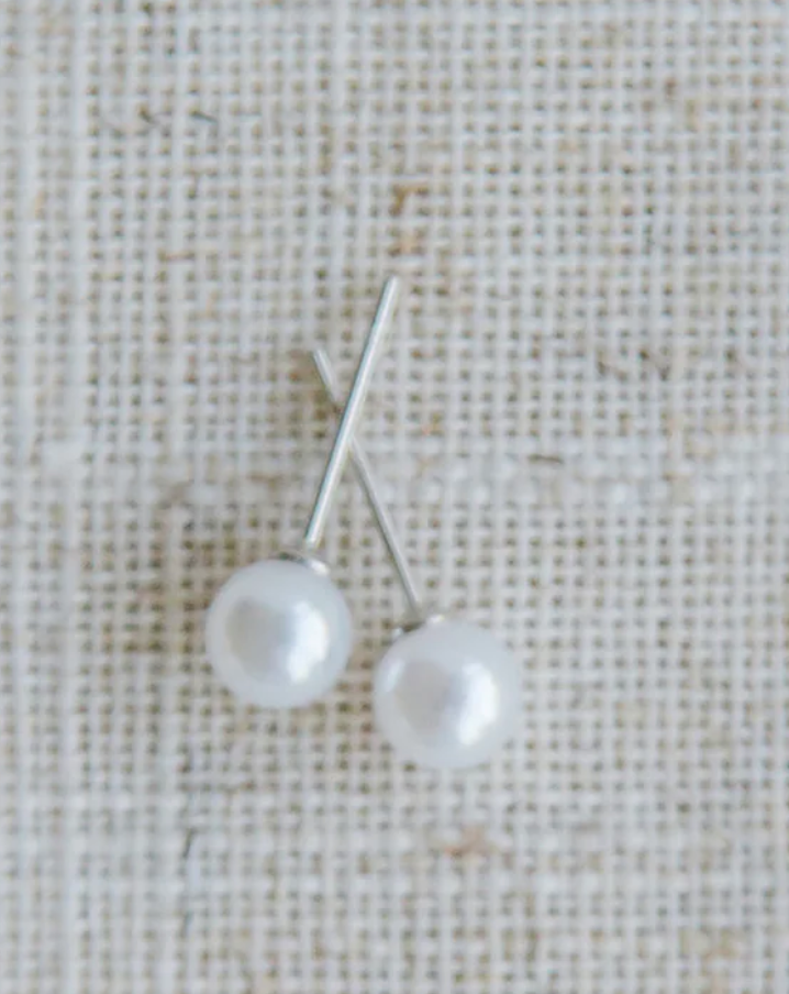 The Hogan Earrings are simple and oh so elegant and come in various sizes! Faux pearl ball studs.
