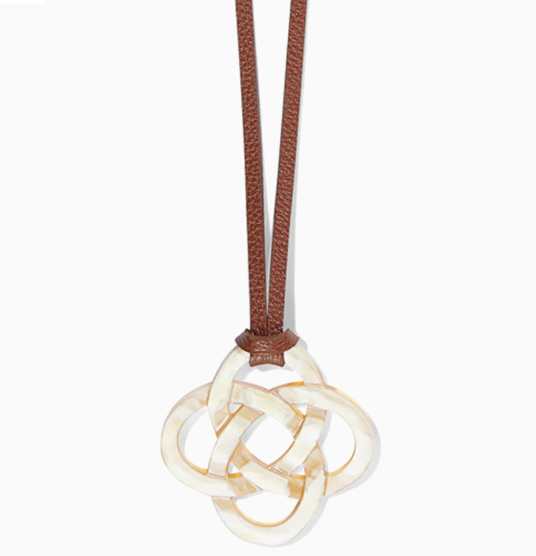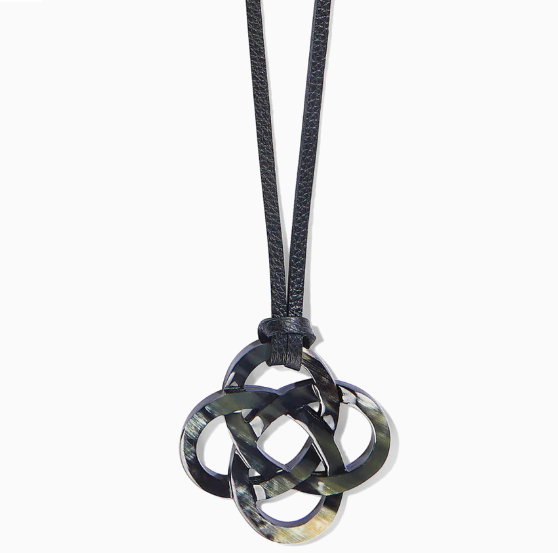 Artisans from Vietnam have carved and shaped natural, ethically-sourced buffalo horn into our designer’s vision for a Celtic knot pendant symbolizing eternal love and friendship. Since each piece is handmade of organic material, there are beautiful variations in the mottled patterns of each one. The necklaces are crafted from the highest quality leathers by our artisans in Los Angeles. It’s like wearing a piece of art!