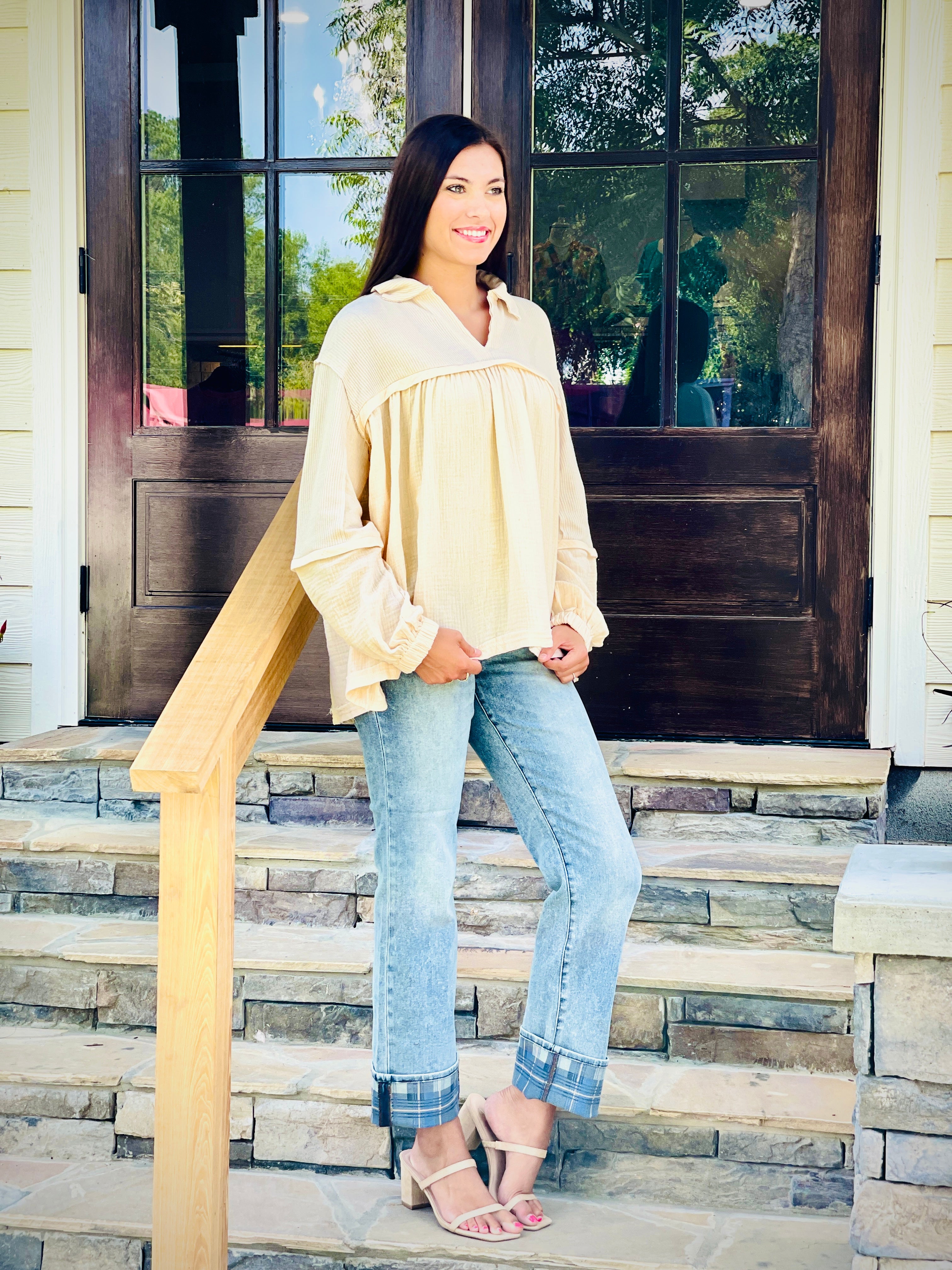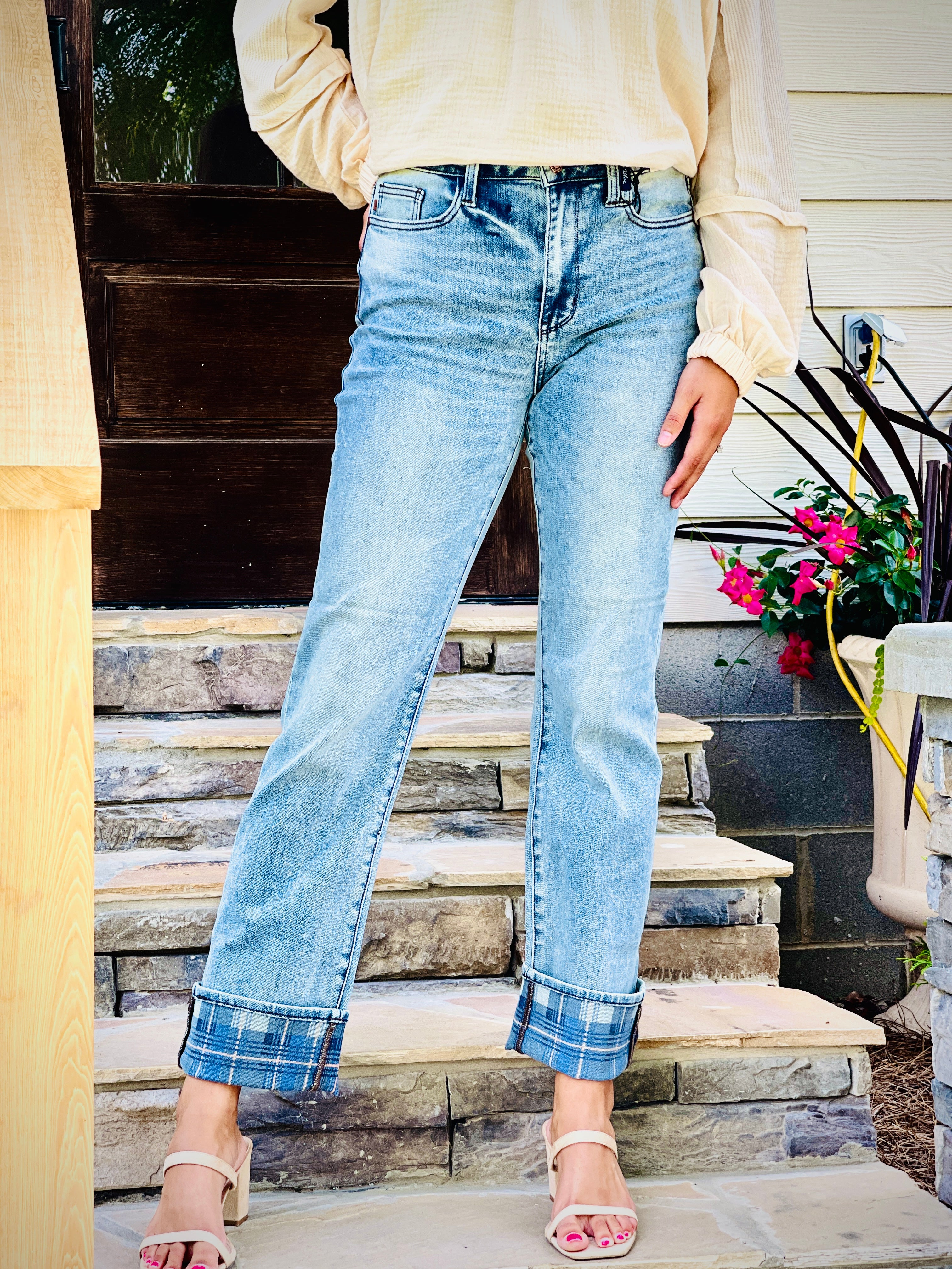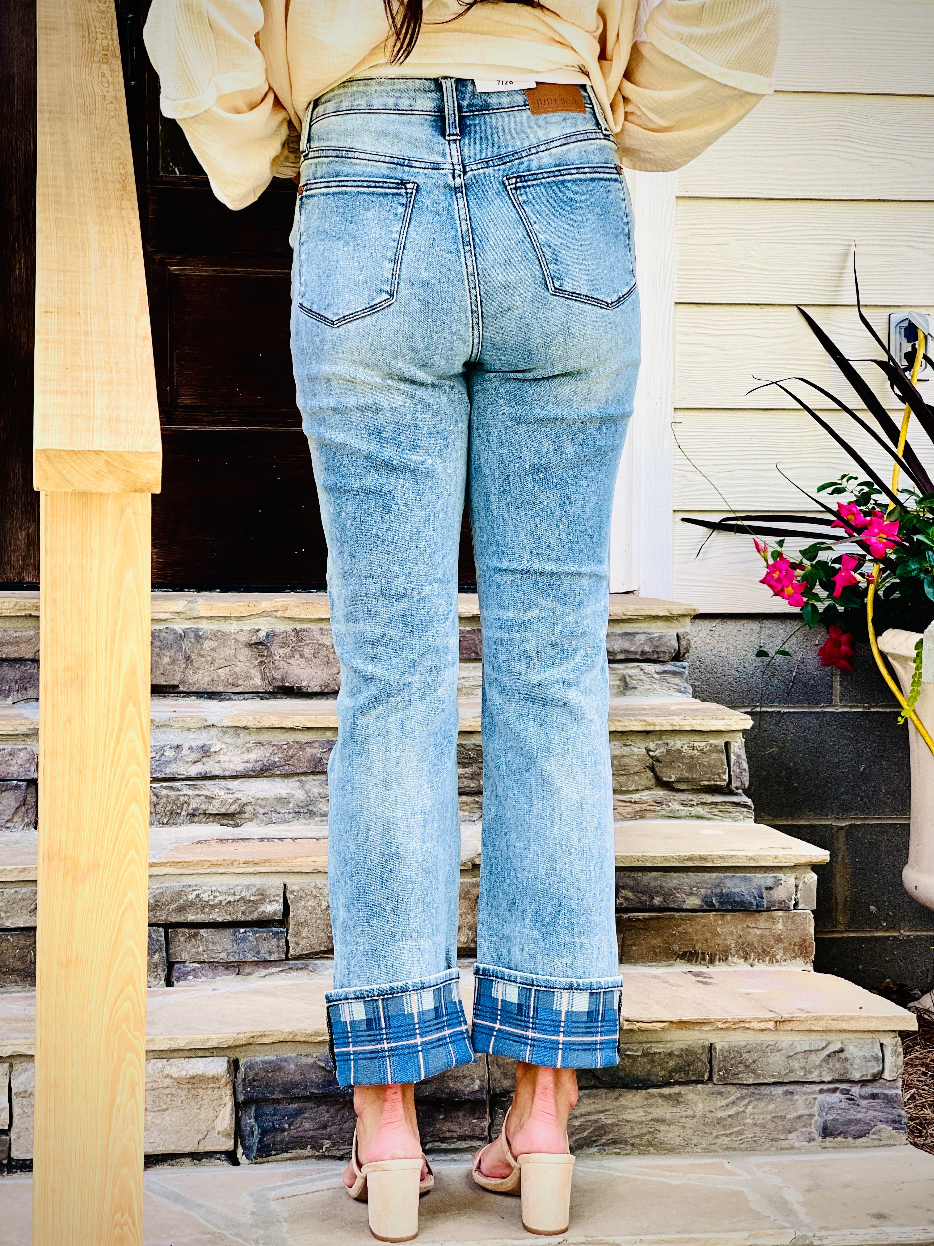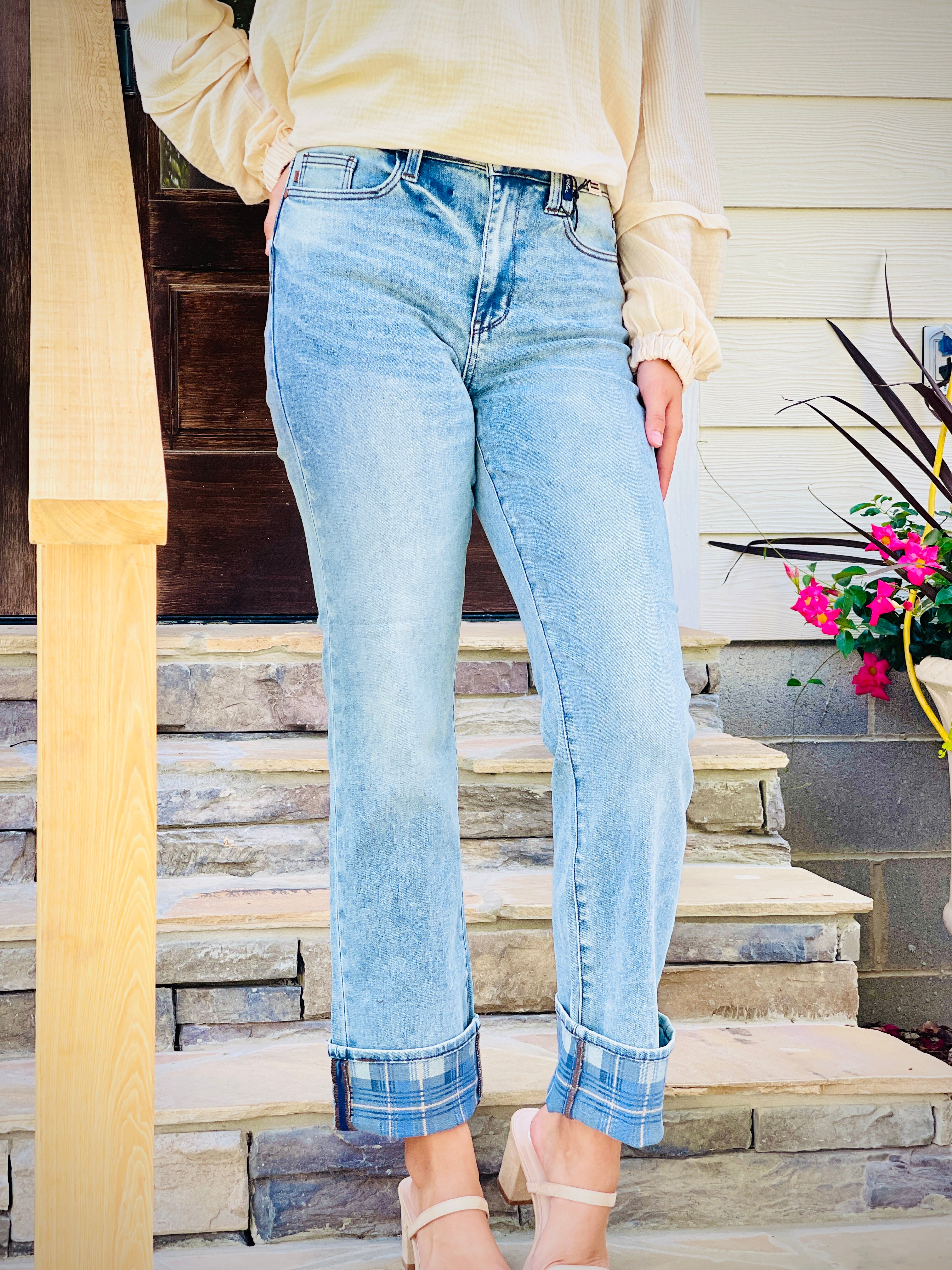 The Judy Blue Vintage Plaid Cuff Pants are the perfect addition to your wardrobe. Designed with comfort and style in mind, these pants feature a classic plaid pattern and cuffed hems for an elevated look. Perfect for the office, date night, or any occasion, these pants will make sure you look and feel great.