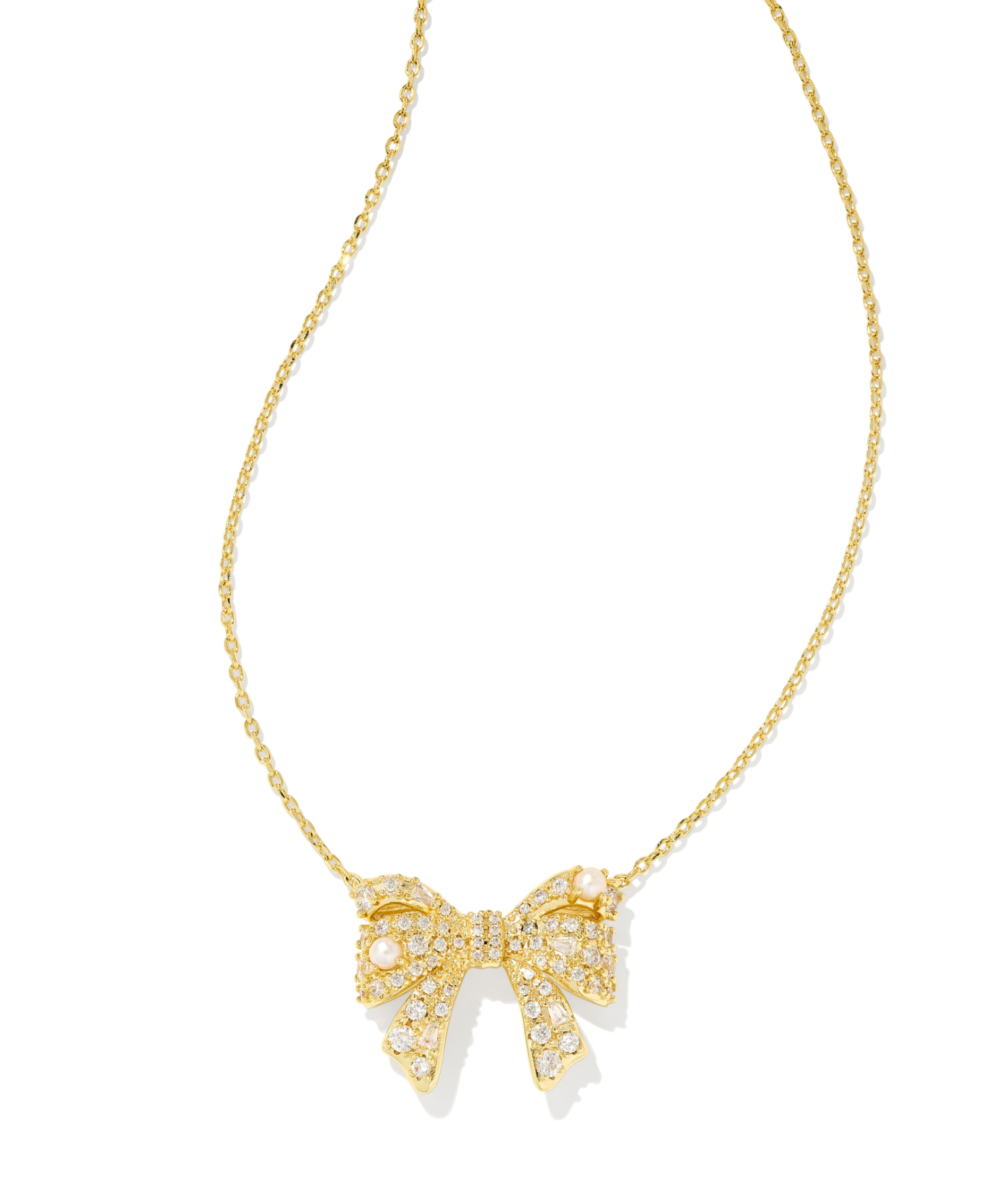 KRISTA BOW SHORT PENDANT NECKLACE GOLD WHITE MIX