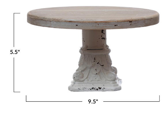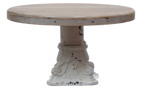 These pedestals are perfect for any kitchen. Made out of wood and metal, these decorative trays have a distressed white and natural color, perfect for any neutral home.