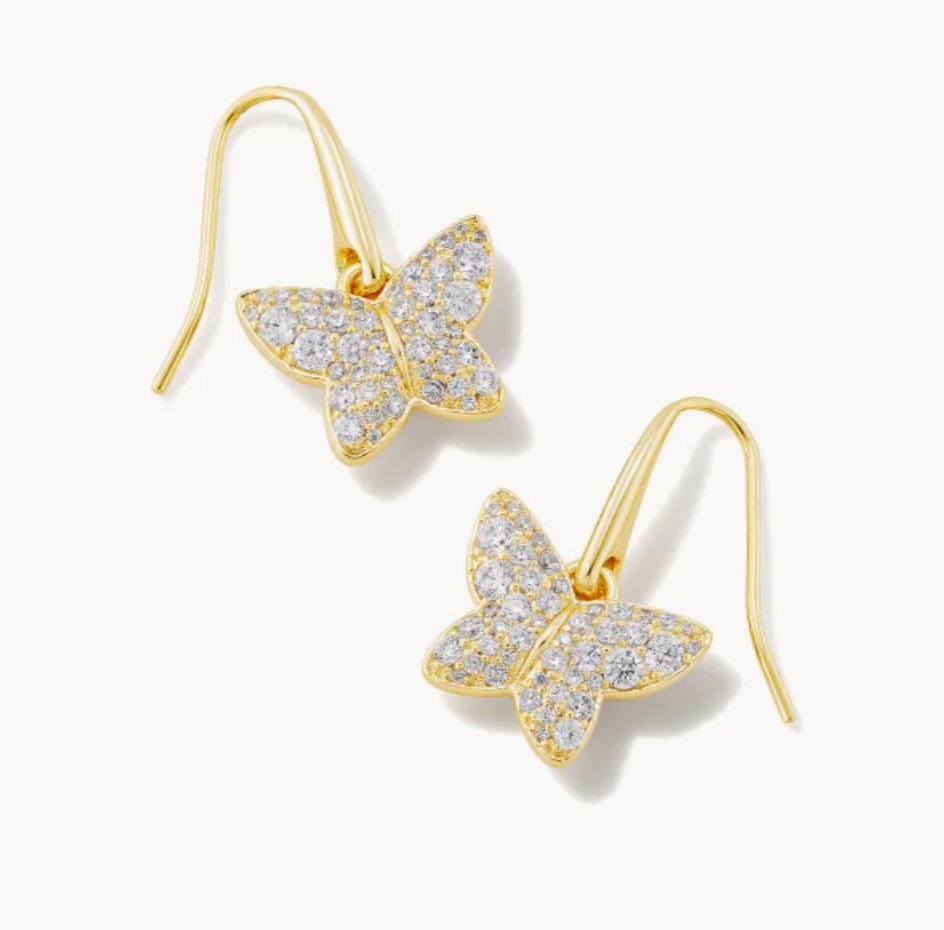 Our customer-favorite Lillia butterfly shape is ready to take flight in this stunning new earring style. Featuring a meaningful symbol of transformation, growth, and hope, the Lillia Crystal Butterfly Gold Drop Earrings in White Crystal are a gorgeous way to add a fun shape to your earring collection.